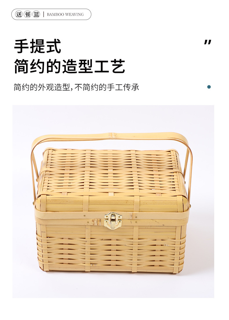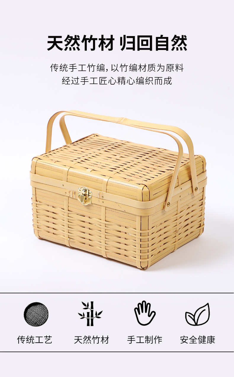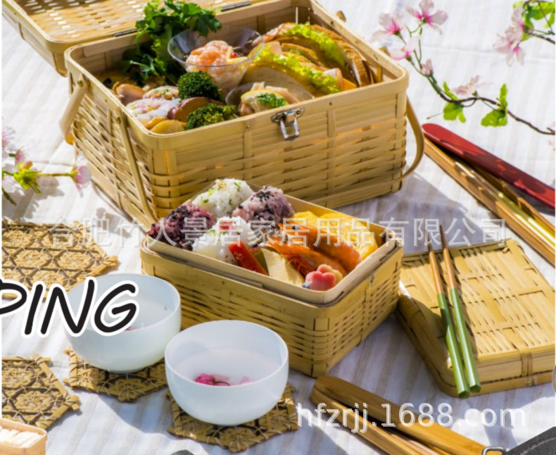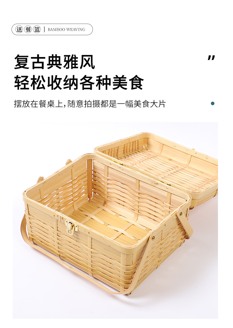 Cesta de comidas al aire libre caja de bento cesta de almacenamiento bambú trenzado camping picnic cesta de mano caja de comidas