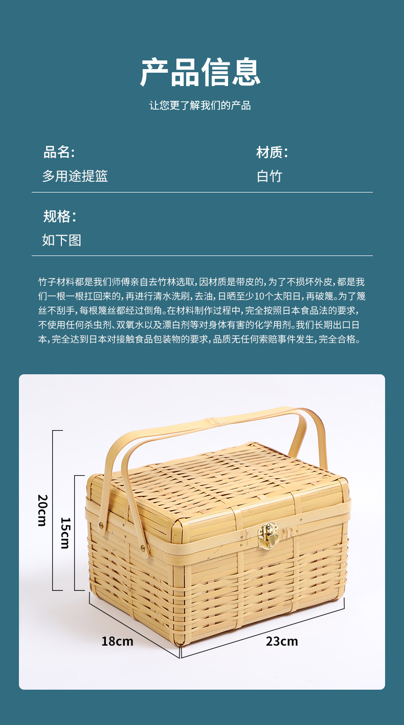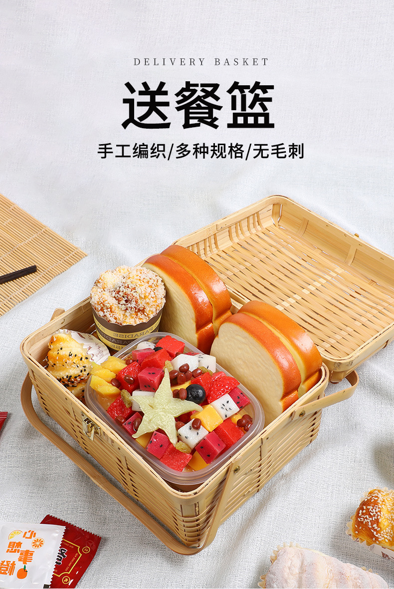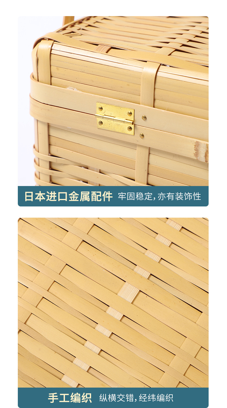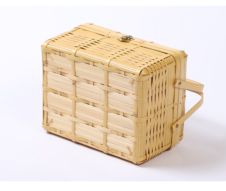 Cesta de comidas al aire libre caja de bento cesta de almacenamiento bambú trenzado camping picnic cesta de mano caja de comidas