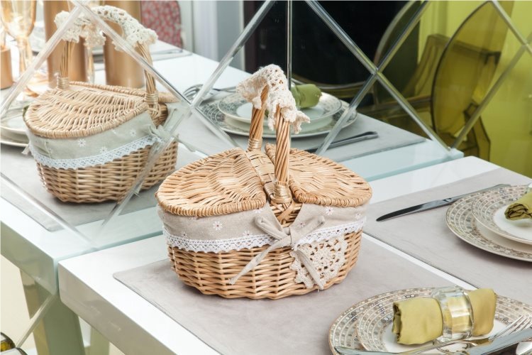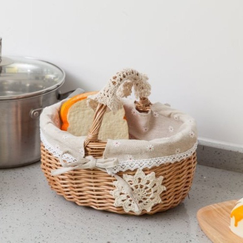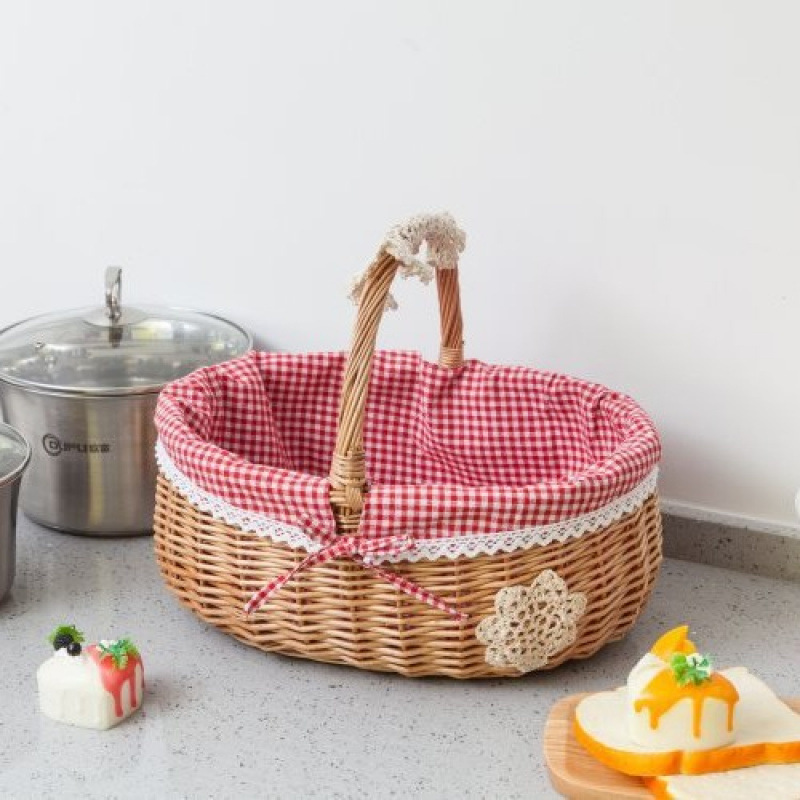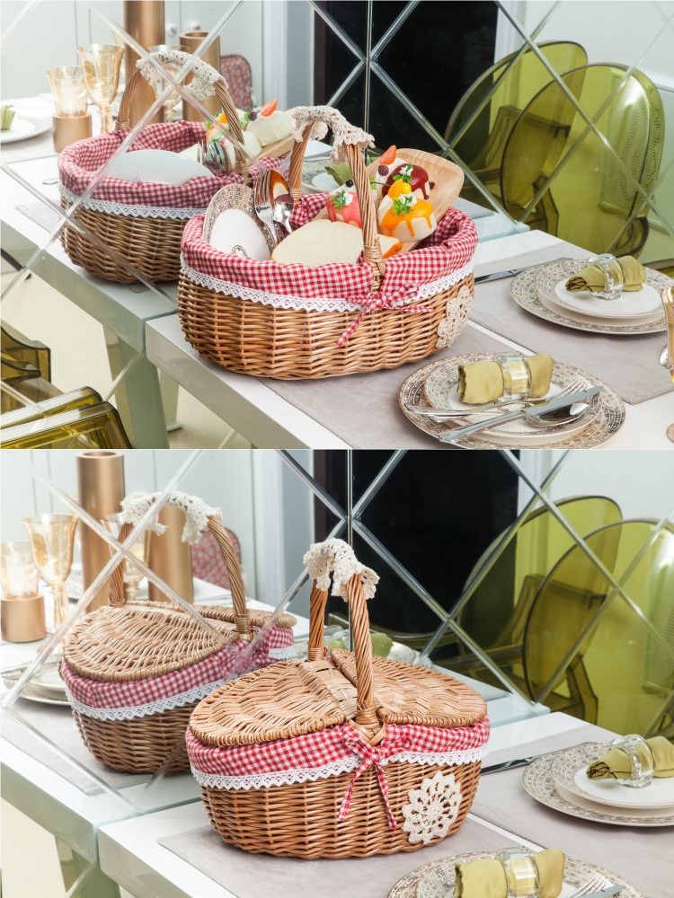 Cestas de bambú de vid de trenzado cestas de picnic cestas de almacenamiento cestas de frutas de trenzado cestas pastorales con cubierta de mesa