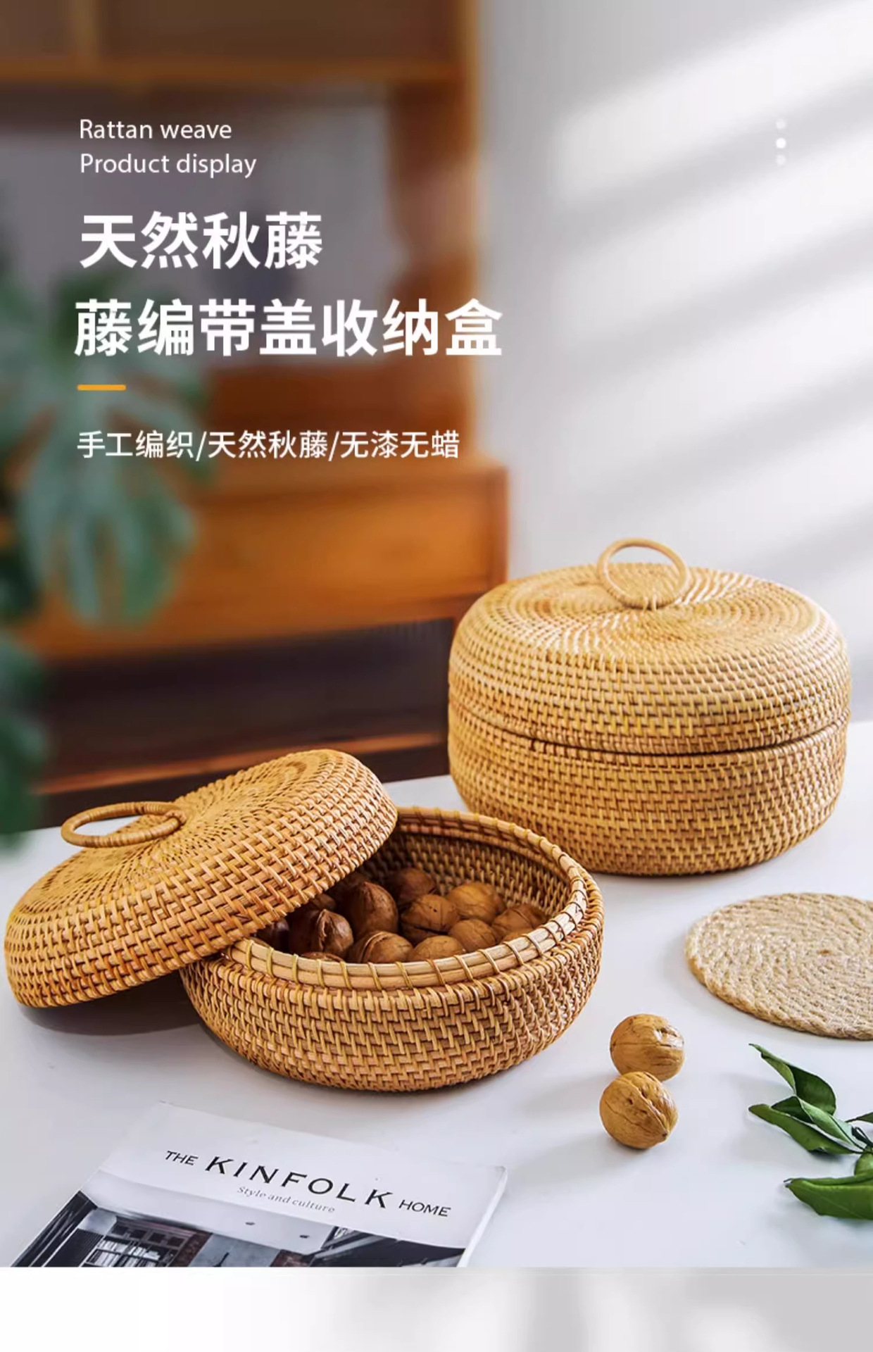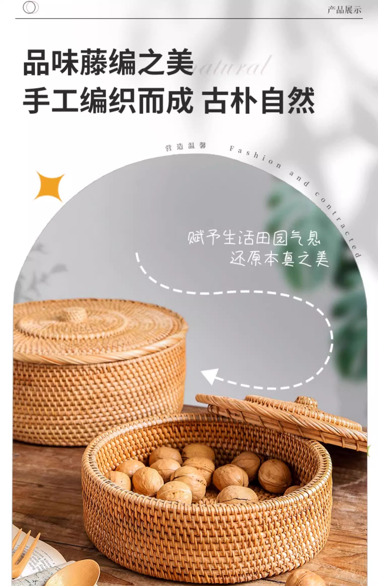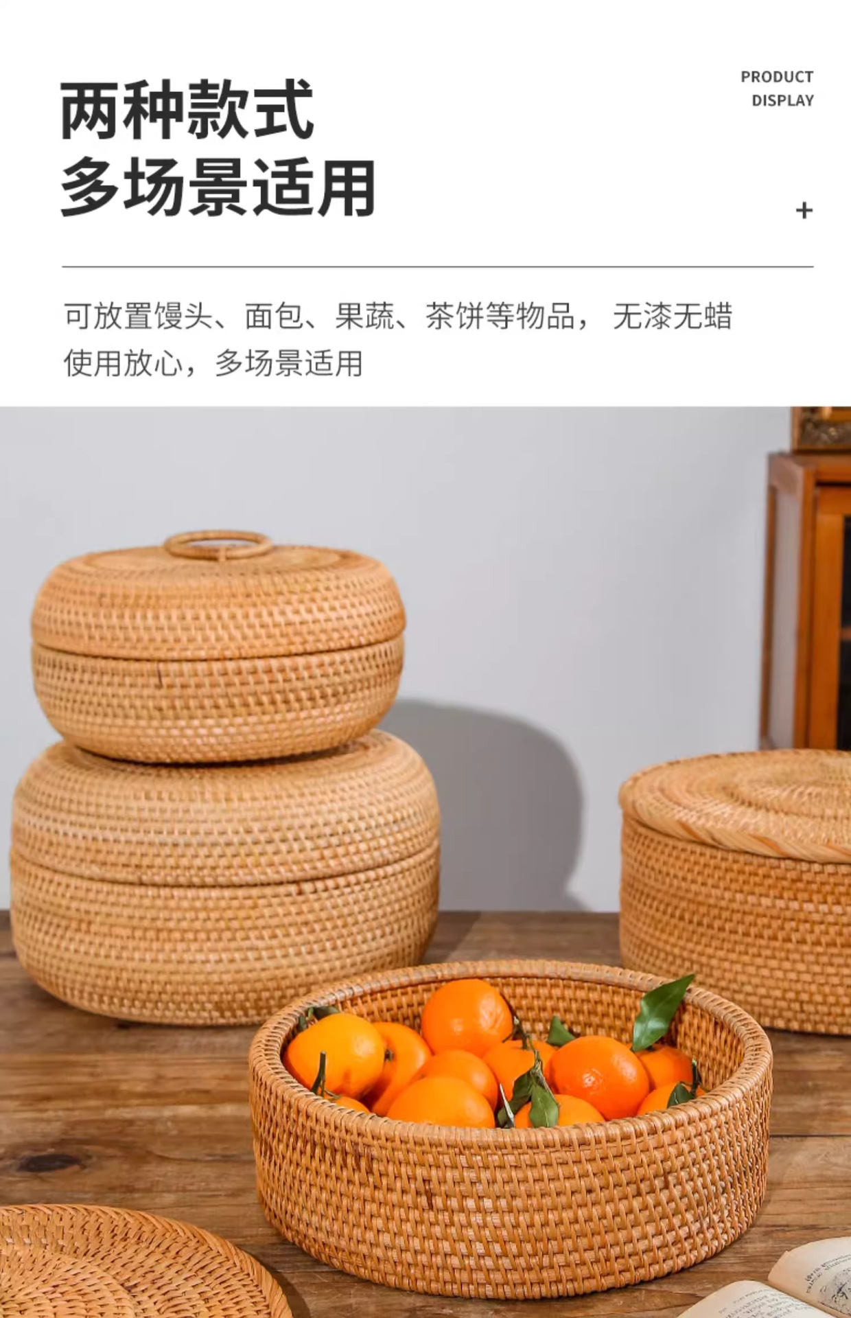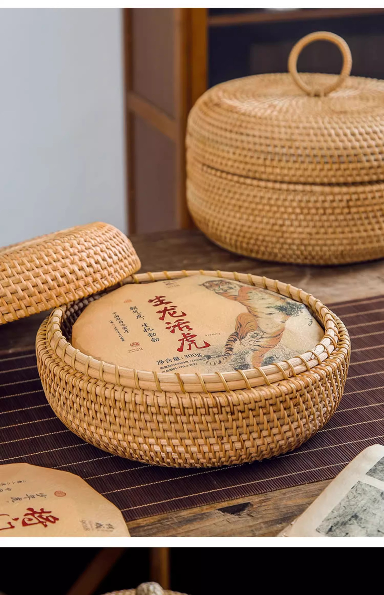 Cesta de almacenamiento de caña tejida de caña cubierta caja de almacenamiento de escritorio caja de pastel de té mesa de té bocadillos de frutas pan al vapor retrógrado sopa