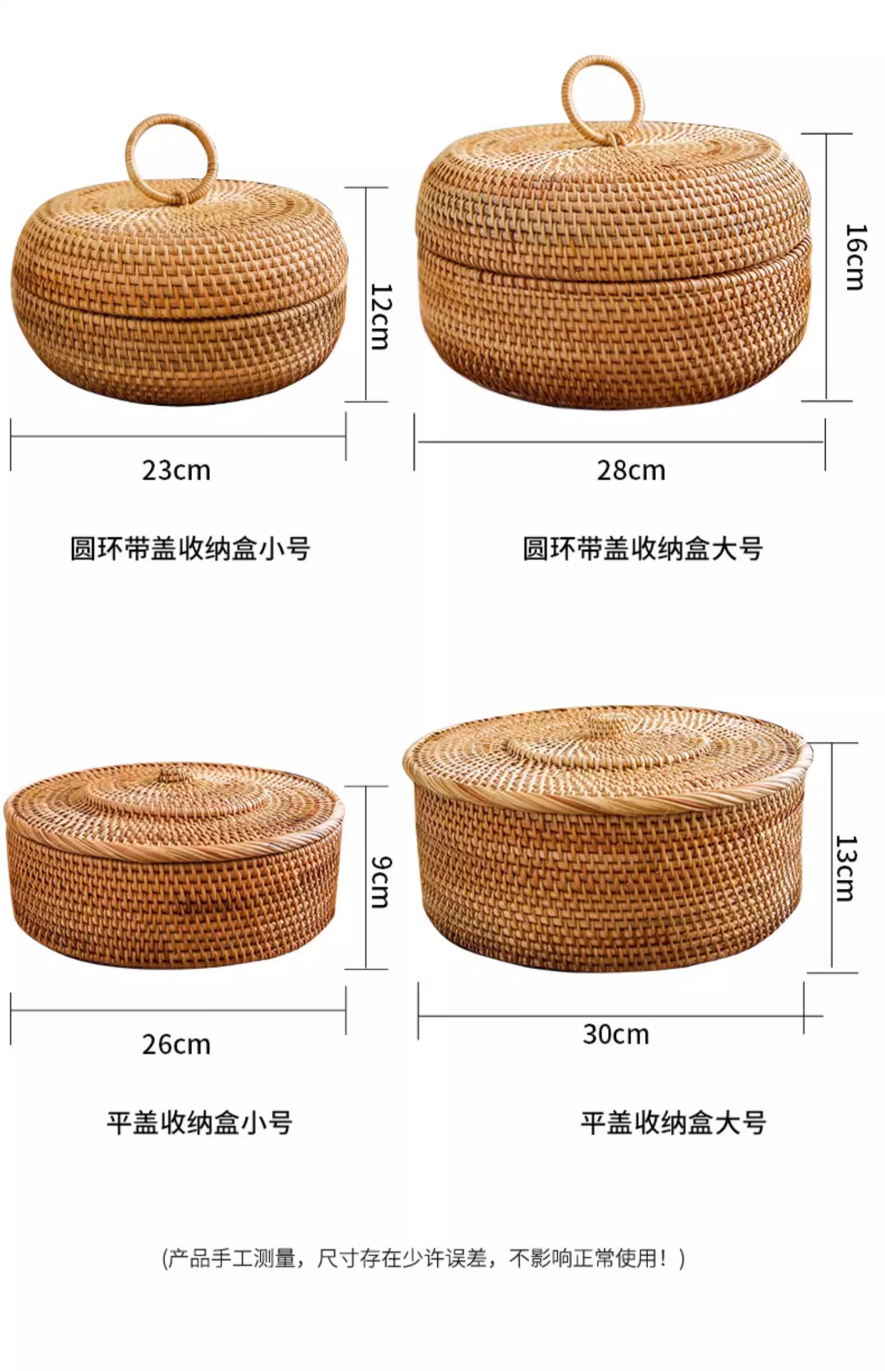 | Color | Caja de almacenamiento de anillo con tapa - pequeña, caja de almacenamiento de anillo con tapa - grande, (elaborado fino) caja de almacenamiento de tapa plana - pequeña, (gran capacidad) caja de almacenamiento de tapa plana - grande, tela fina "vientre redondo" con tapa, caja de dulces (aproximadamente 23cm de diámetro x 13cm de altura) |