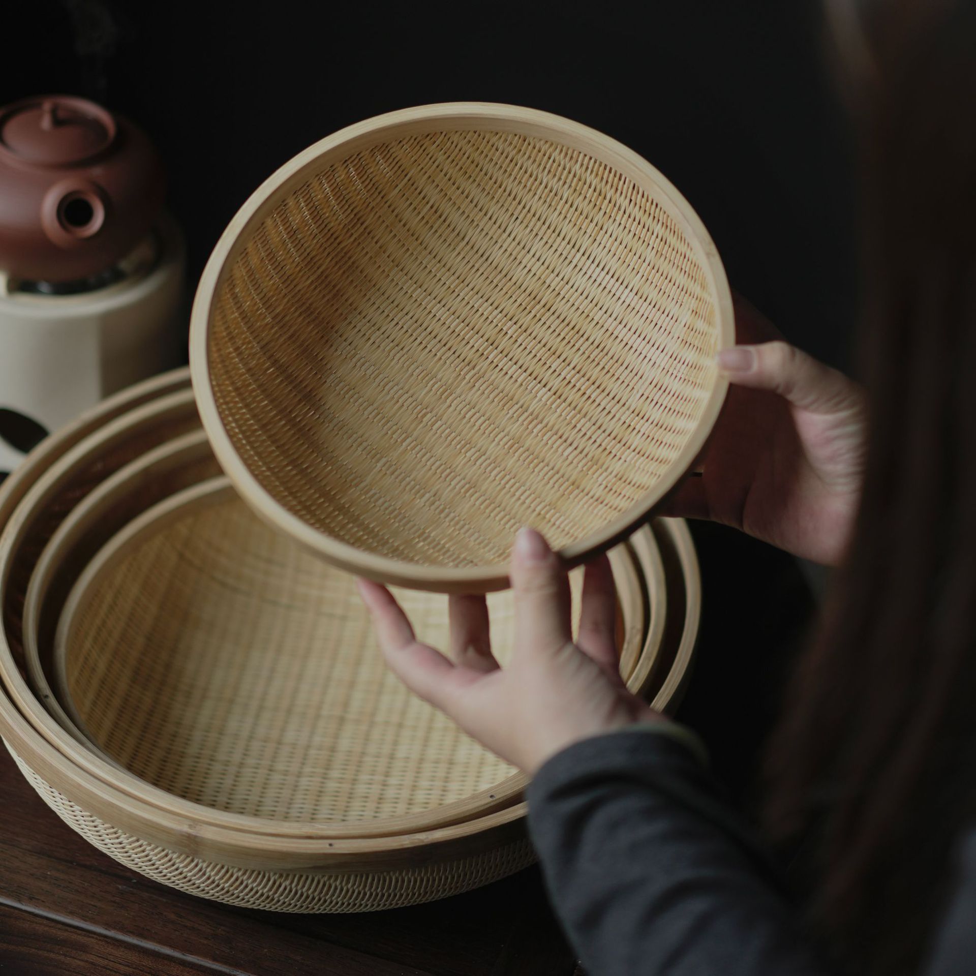 Cestas de bambú trenzadas, cestas de almacenamiento, placas de frutas hechas a mano, cestas de aguja, cestas de aguja, utensilios de té, almacenamiento de artículos