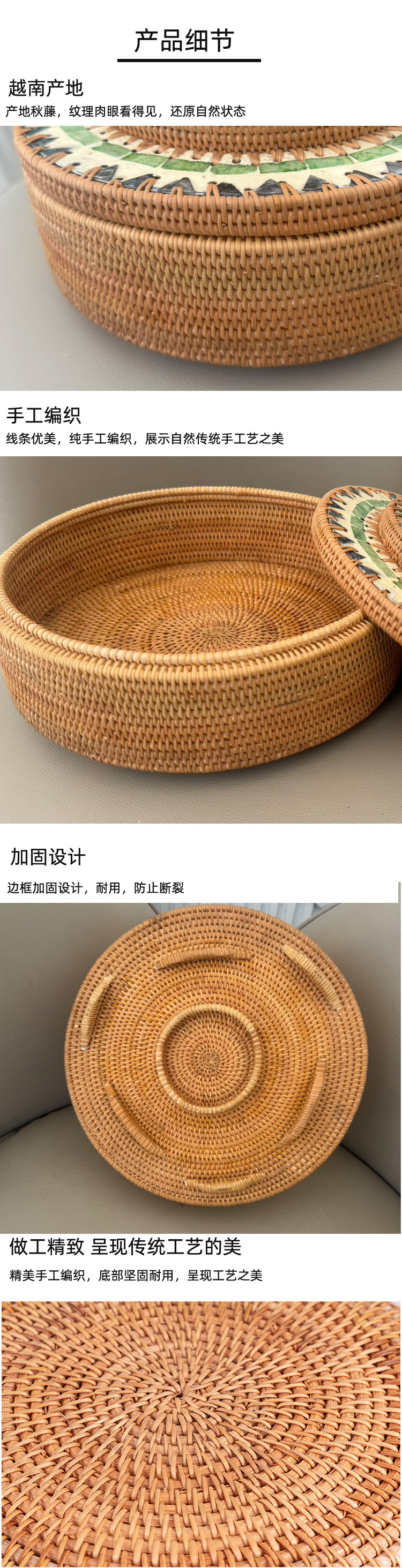 Vietnam al por mayor acuta tejida a mano cestas de almacenamiento cestas de frutas bocadillos caja de almacenamiento cestas de dulces