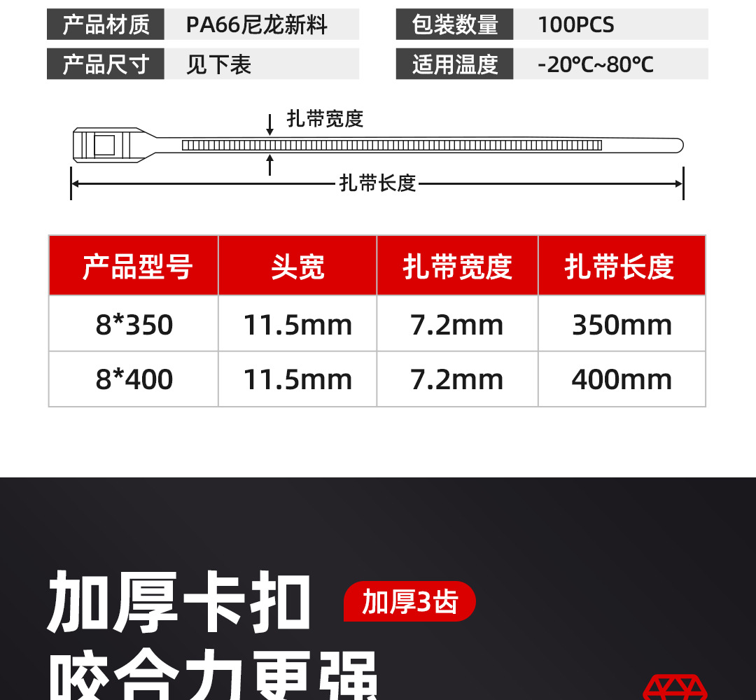 8*350 ancho 7.2 rojo; 100 unidades/paquete