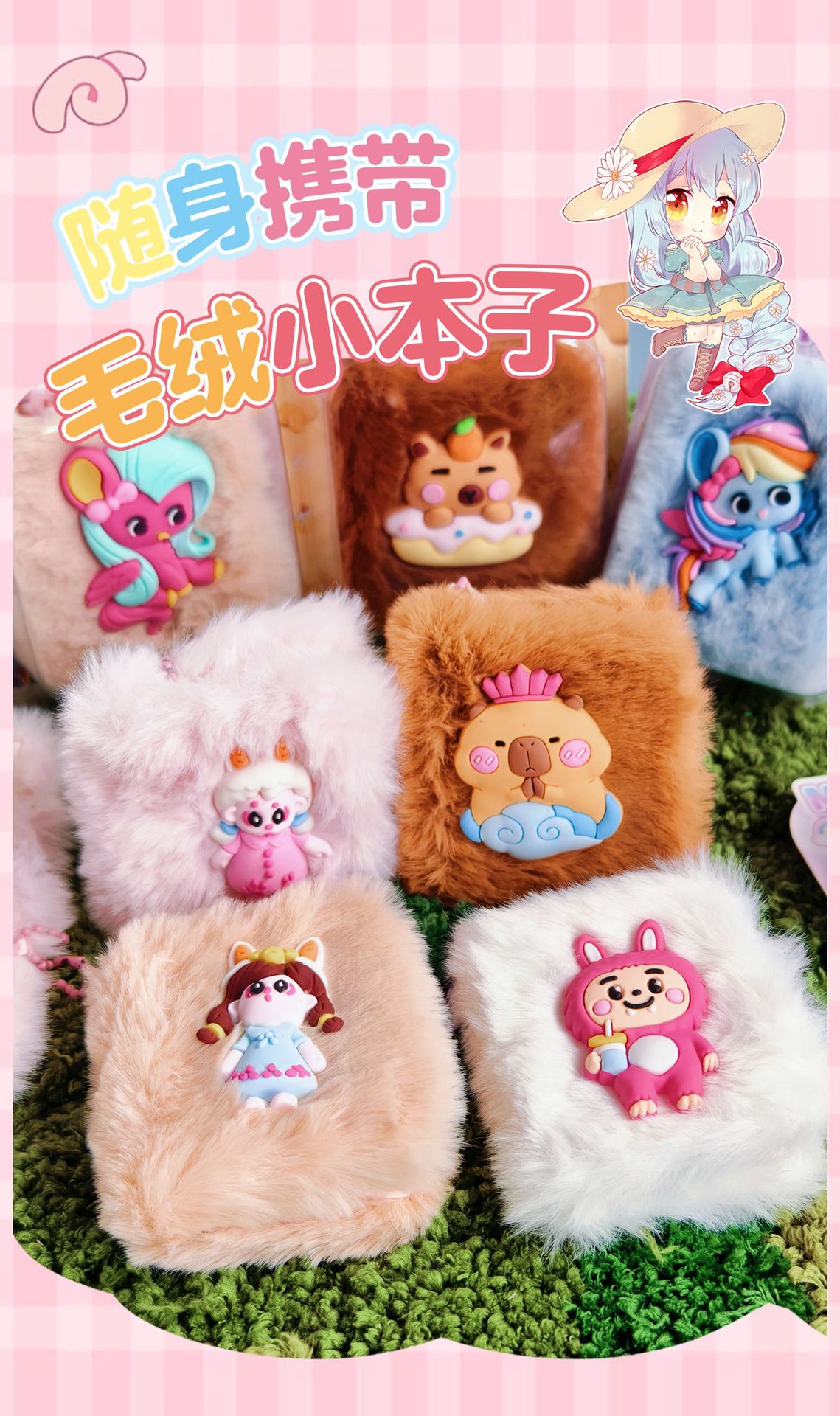 Bonita serie de dibujos animados suave fufu mini cuaderno de mano raboo pony bolly bolsillo de peluche cuaderno