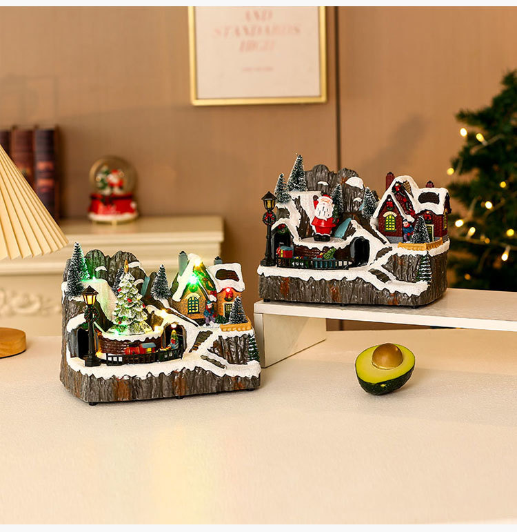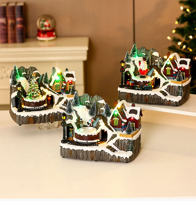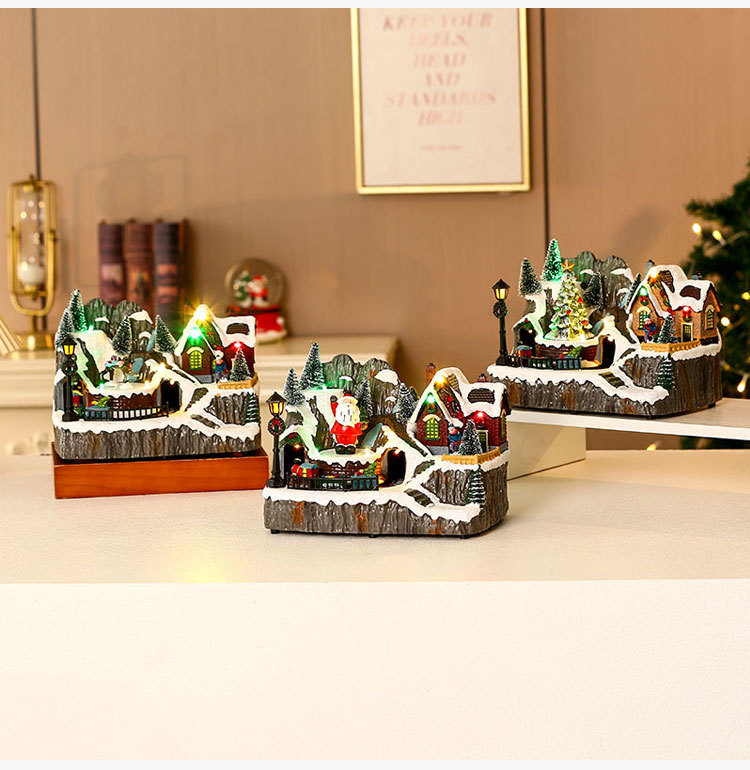Nueva Navidad con música luminosa giratoria adornos de resina decoraciones de Navidad hotel restaurante centro comercial escena
