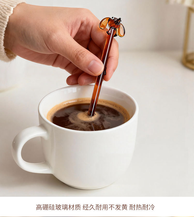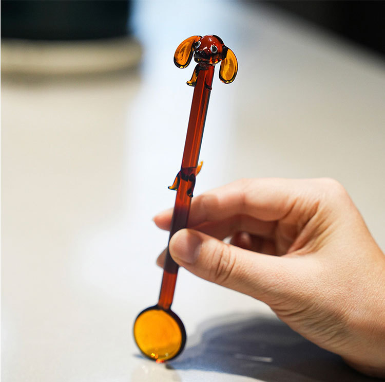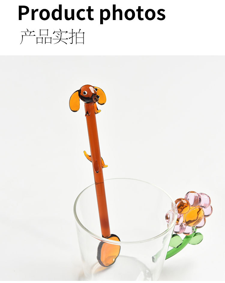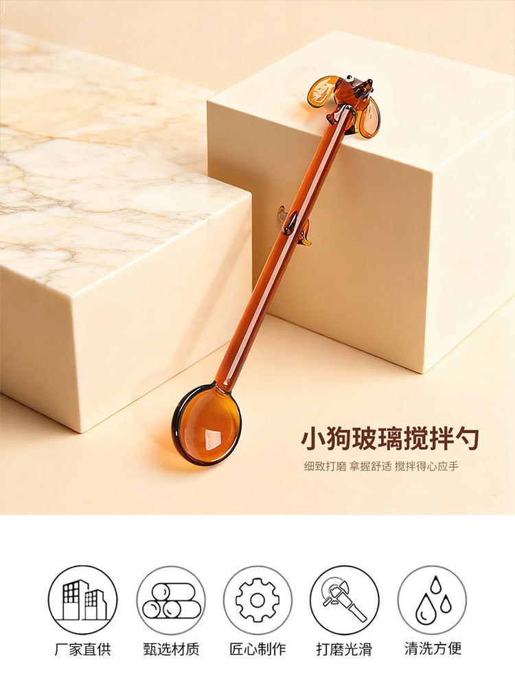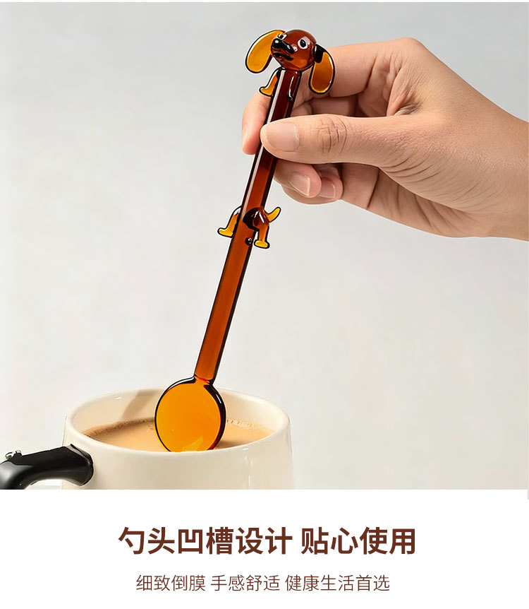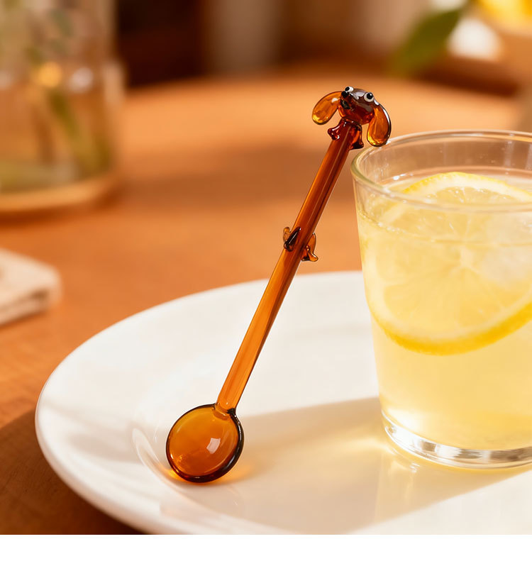 Cuchara de café de perro creativa encantadora cuchara de vidrio de colores encantadora cuchara de helado de postre cuchara de café batida