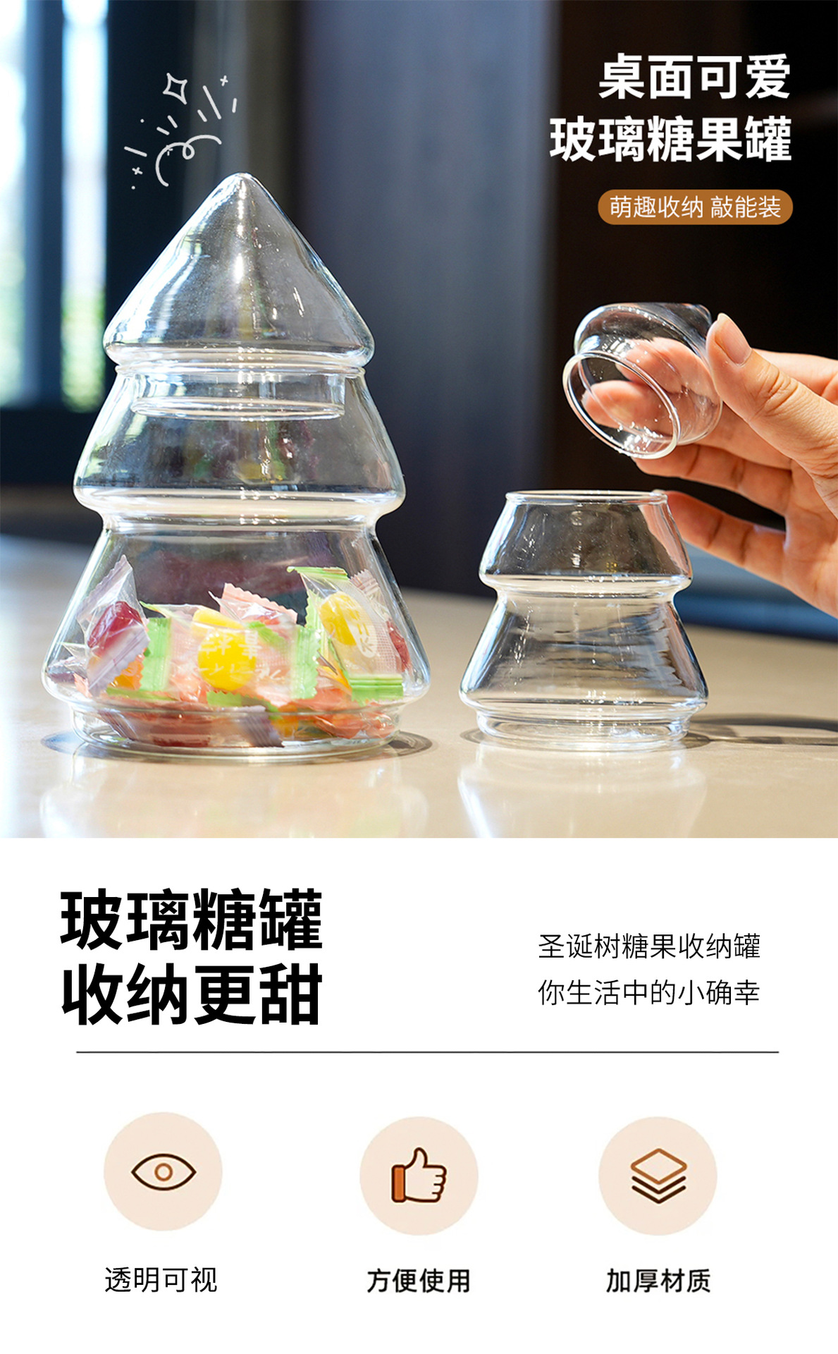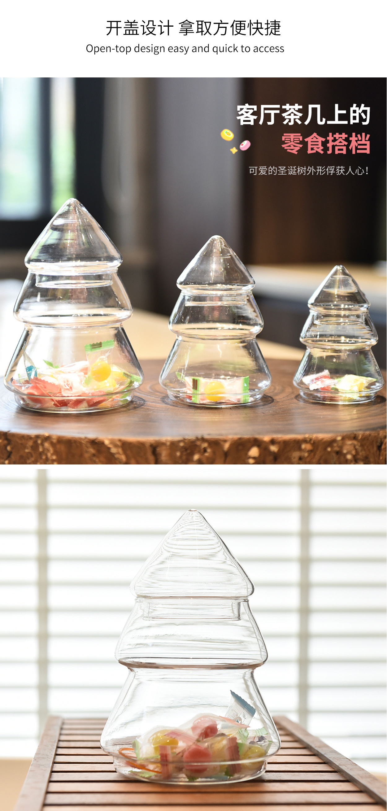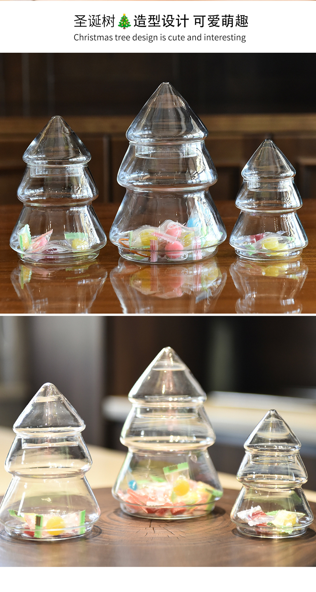 Tarro de almacenamiento de árbol de Navidad de vidrio creativo Tarro de dulces con tapa Decoración de almacenamiento de estilo europeo Decoración del hogar Decoración de mesa de postre suave