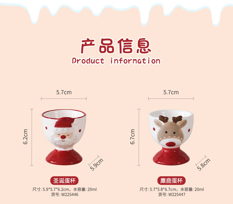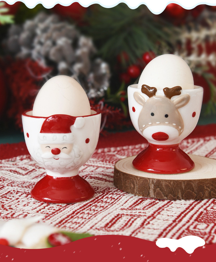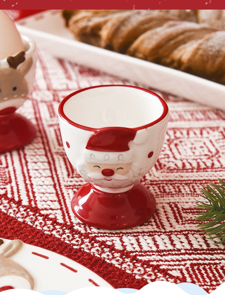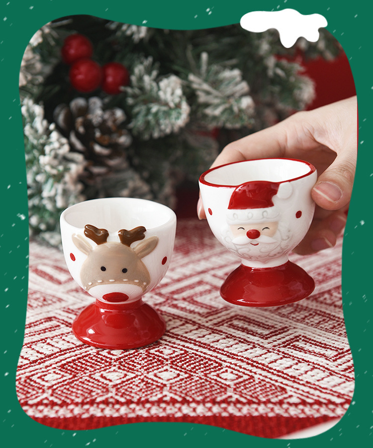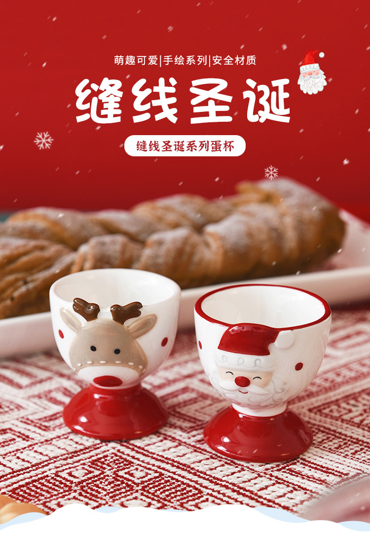 Taza de huevo de cerámica creativa de huevo de estilo nórdico de costura Santa Claus pequeña taza de vino encantadora taza de huevo de alce de alto valor facial
