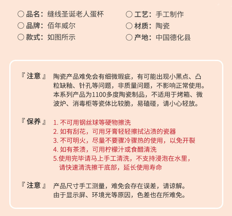 | Color | Taza de huevo de alce W225447, taza de huevo de Navidad W225446 |