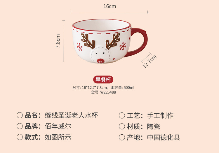 Navidad esmaltado bajo color nórdico costura Santa gran capacidad taza de agua de cerámica relieve regalo de agua caja de regalo de Navidad