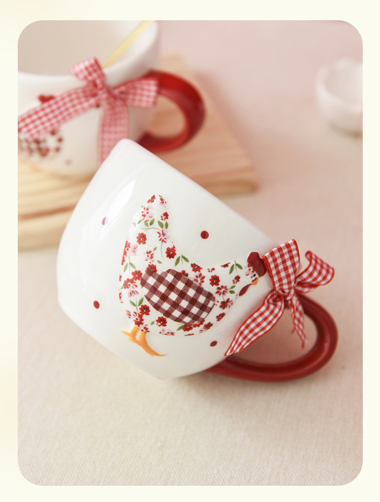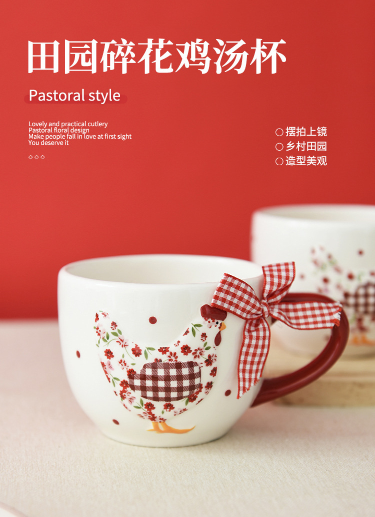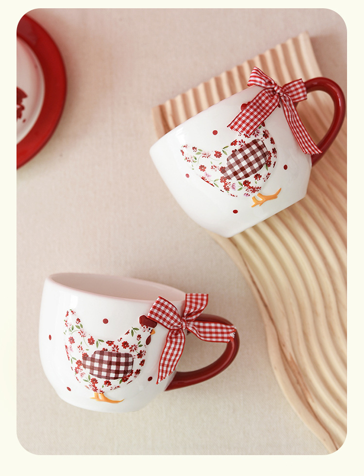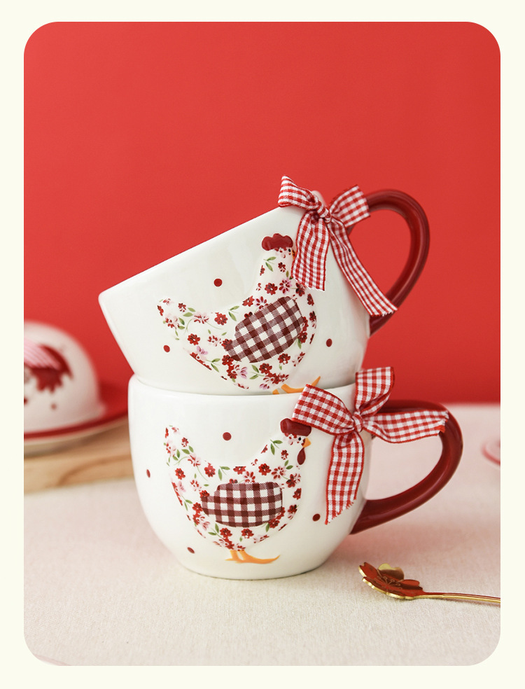 Pastoral viento rojo pollo de cerámica taza de cerámica taza de leche taza de desayuno taza de sopa creativa casera taza