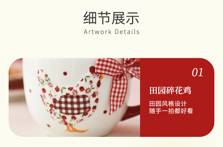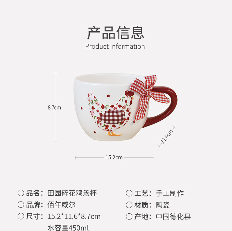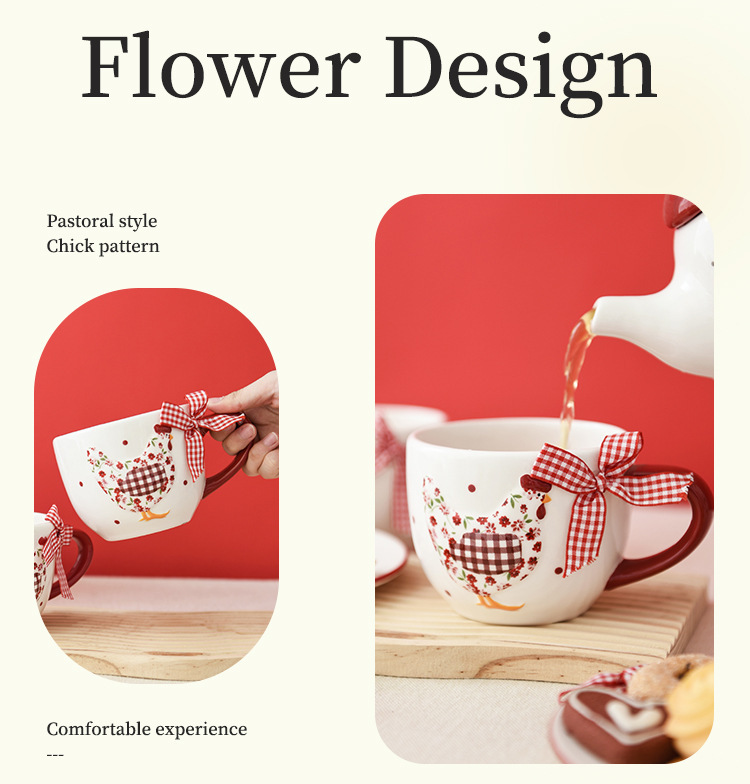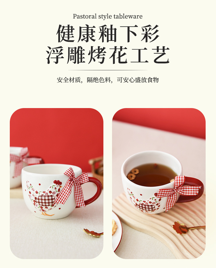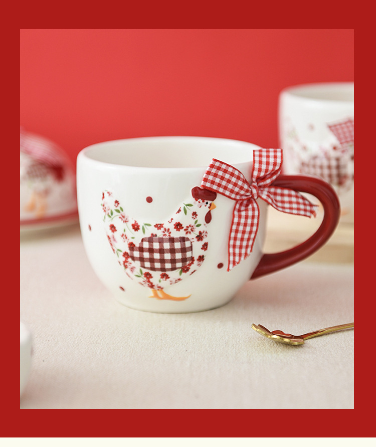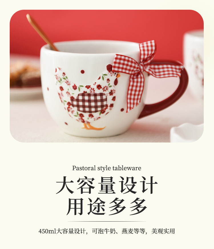 Pastoral viento rojo pollo de cerámica taza de cerámica taza de leche taza de desayuno taza de sopa creativa casera taza