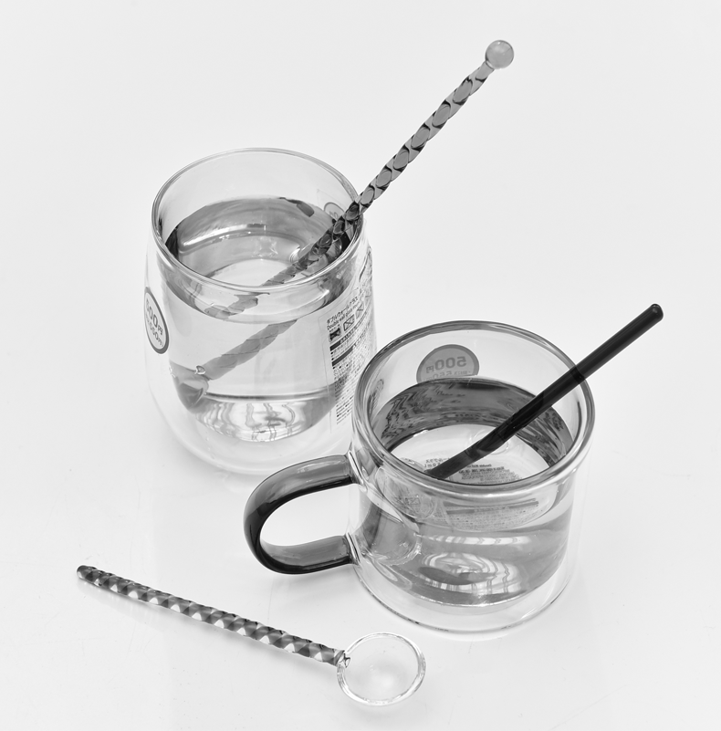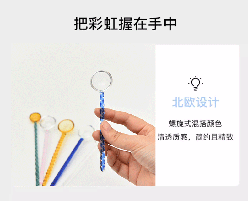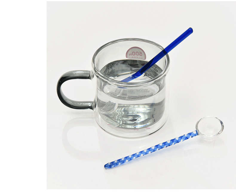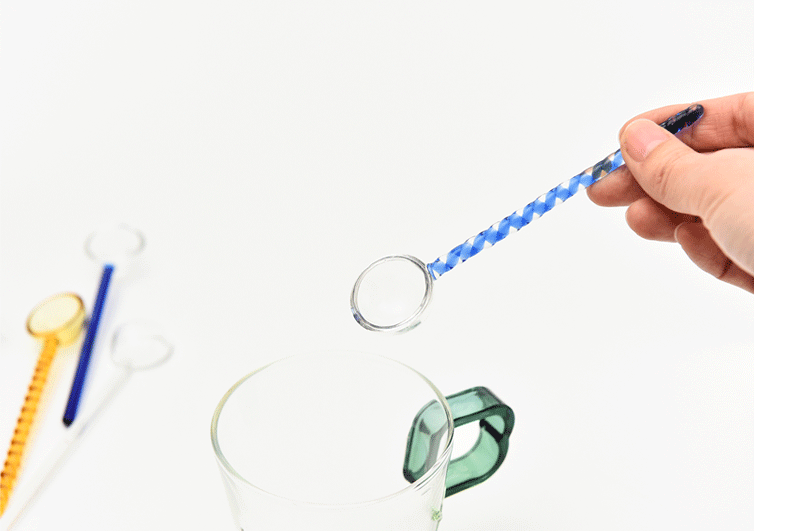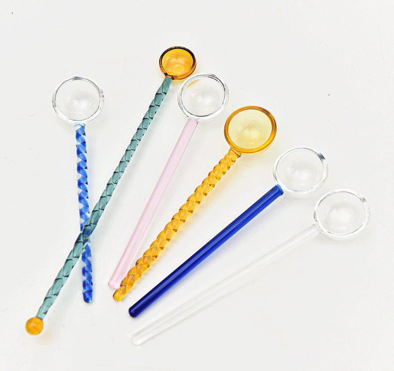 Cuchara de postre de leche creativa color transparente cuchara de vidrio resistente a altas temperaturas cuchara de varilla de agitación de café de mango largo de color alto