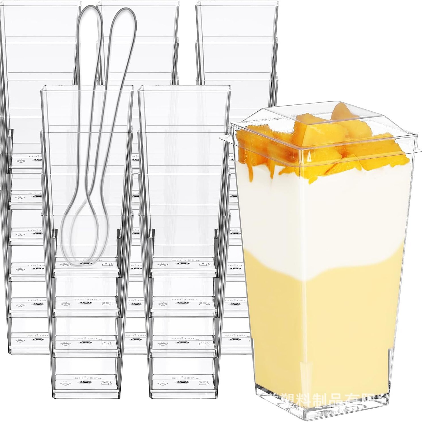 3OZ desechable taza cuadrada taza de mousse de plástico transparente taza cuadrada pudín taza de postre conjunto transfronterizo con cuchara con cubierta