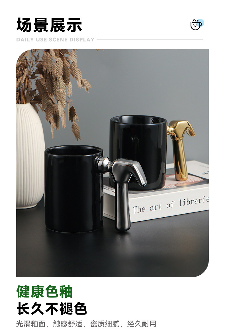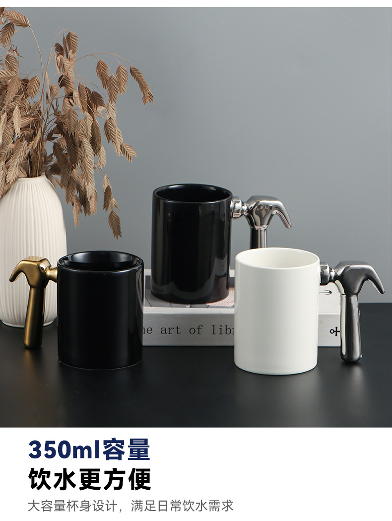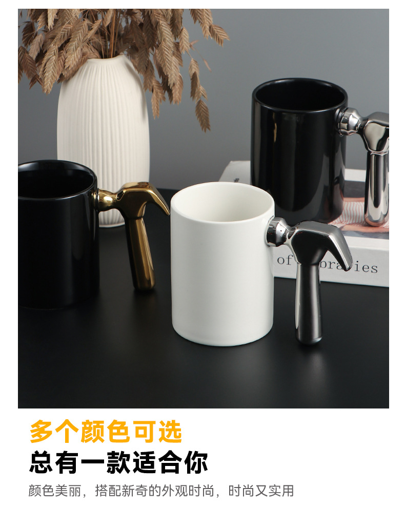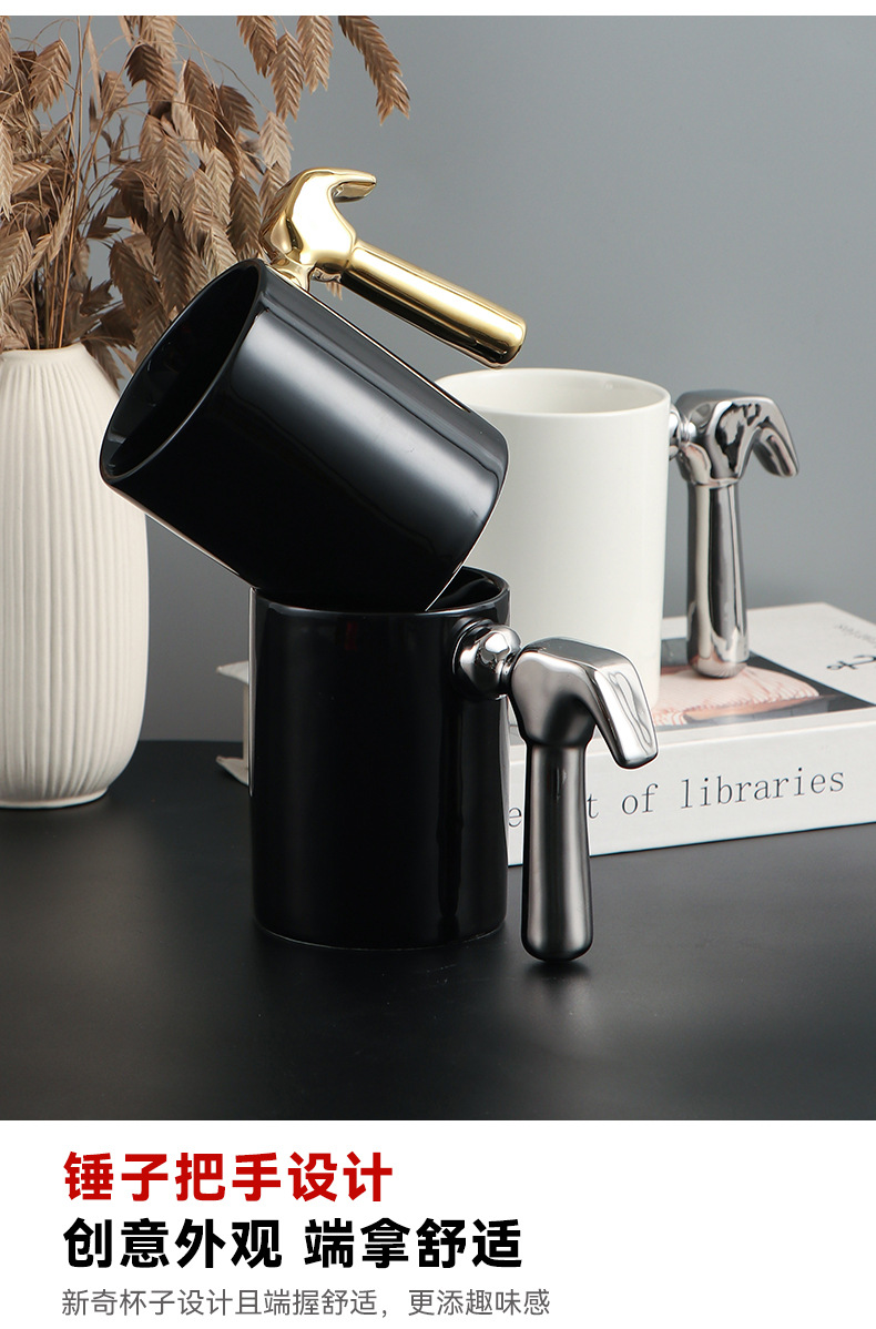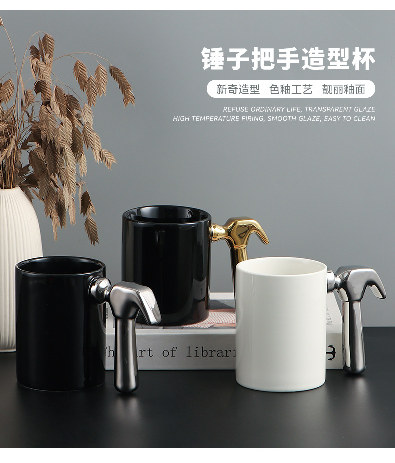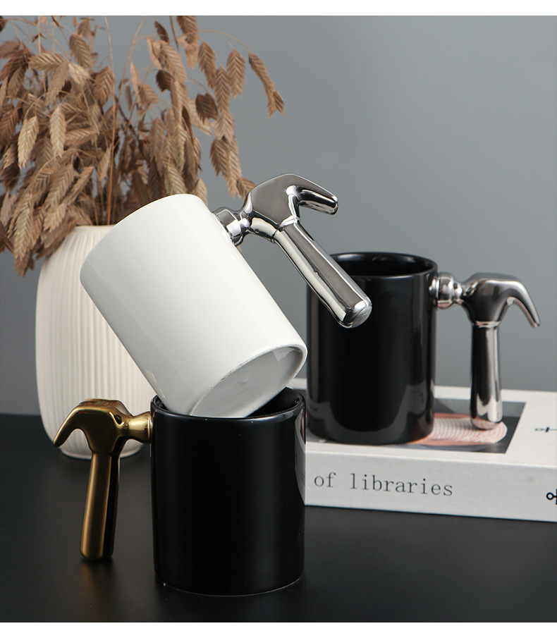 Creativo galvanizado oro y plata martillo mango taza de cerámica hardware taza logotipo publicitario regalo taza de café