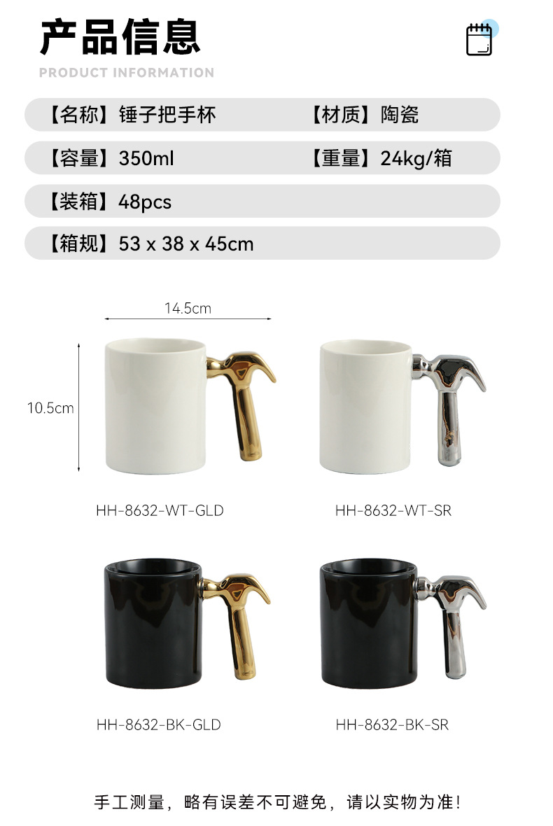 | Color | Taza de martillo dorado, taza de martillo plateado, taza de martillo dorado [empaque expreso], taza de martillo plateado [empaque expreso] |