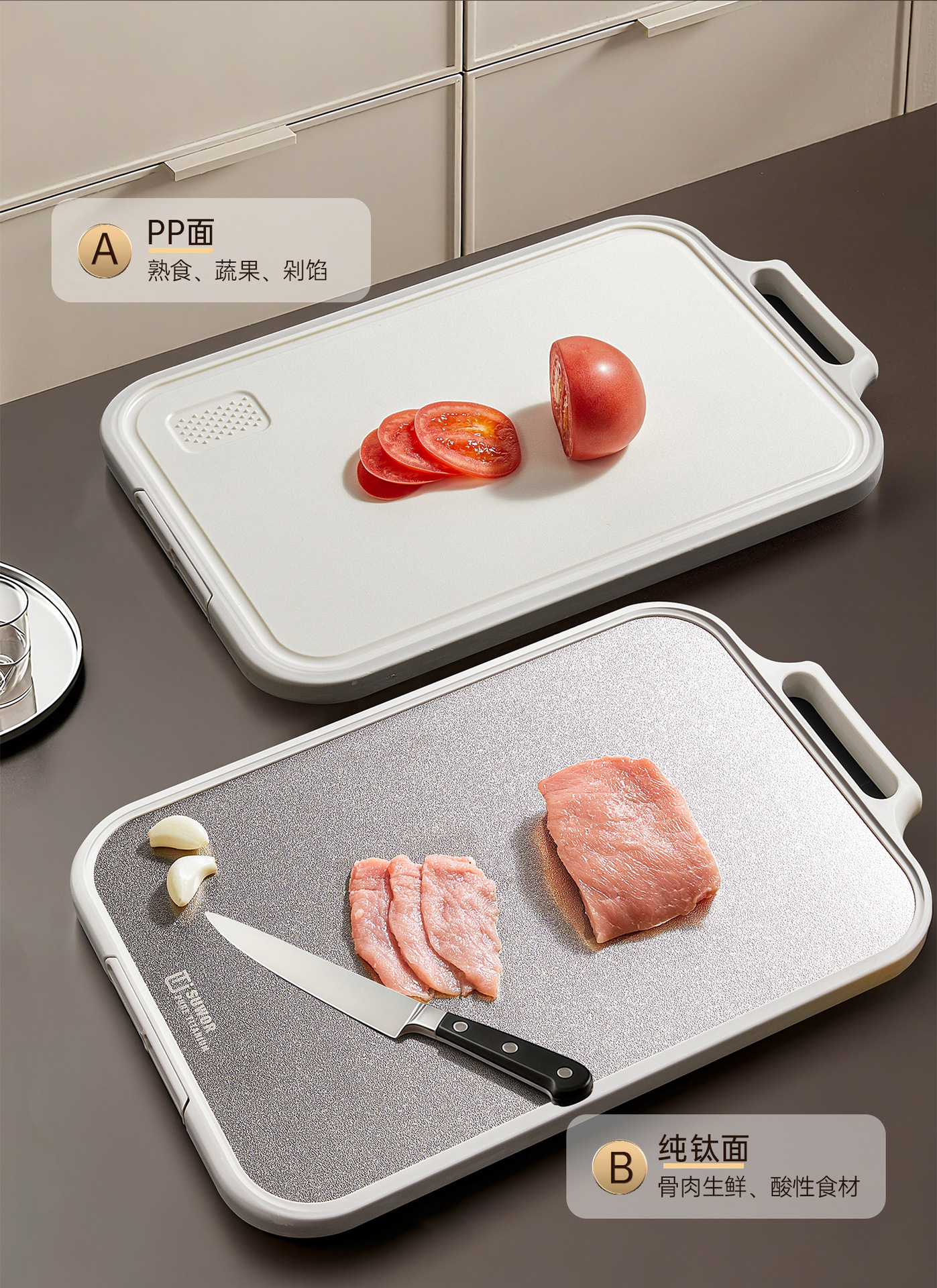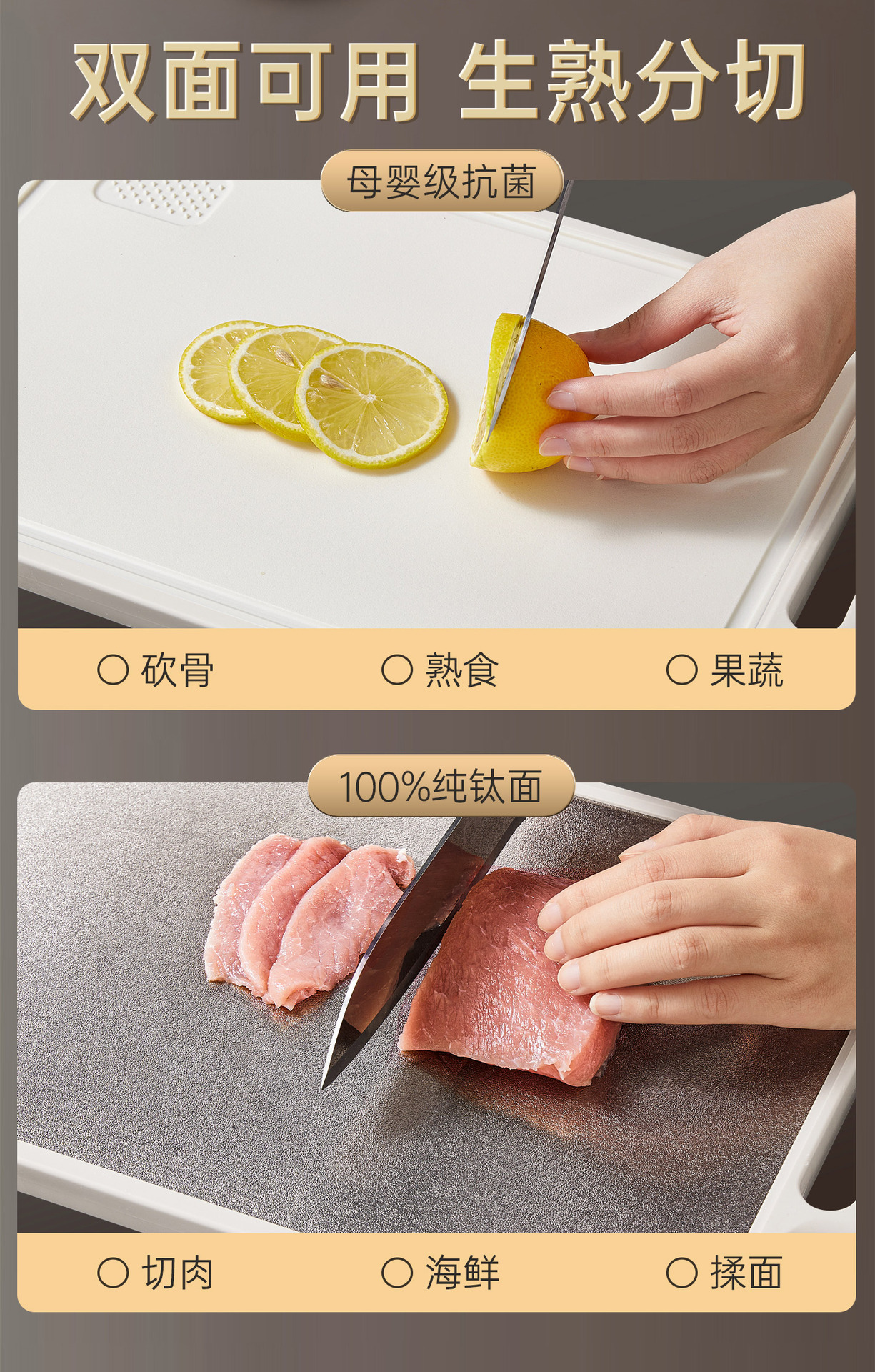 tablero de corte de titanio puro de doble cara tablero de corte de acero inoxidable antibacteriano especial para cocina tablero de corte de plástico de grado alimenticio