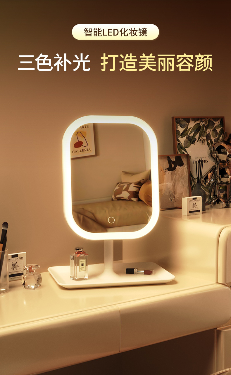 Espejo de maquillaje inteligente LED luminoso con luz, tocador de dormitorio de niñas, espejo de tocador, espejo de relleno de escritorio de dormitorio de estudiantes