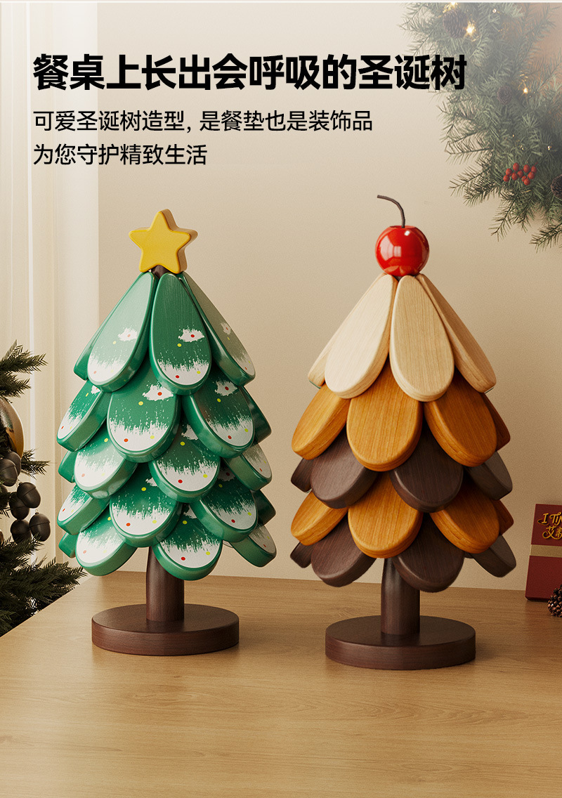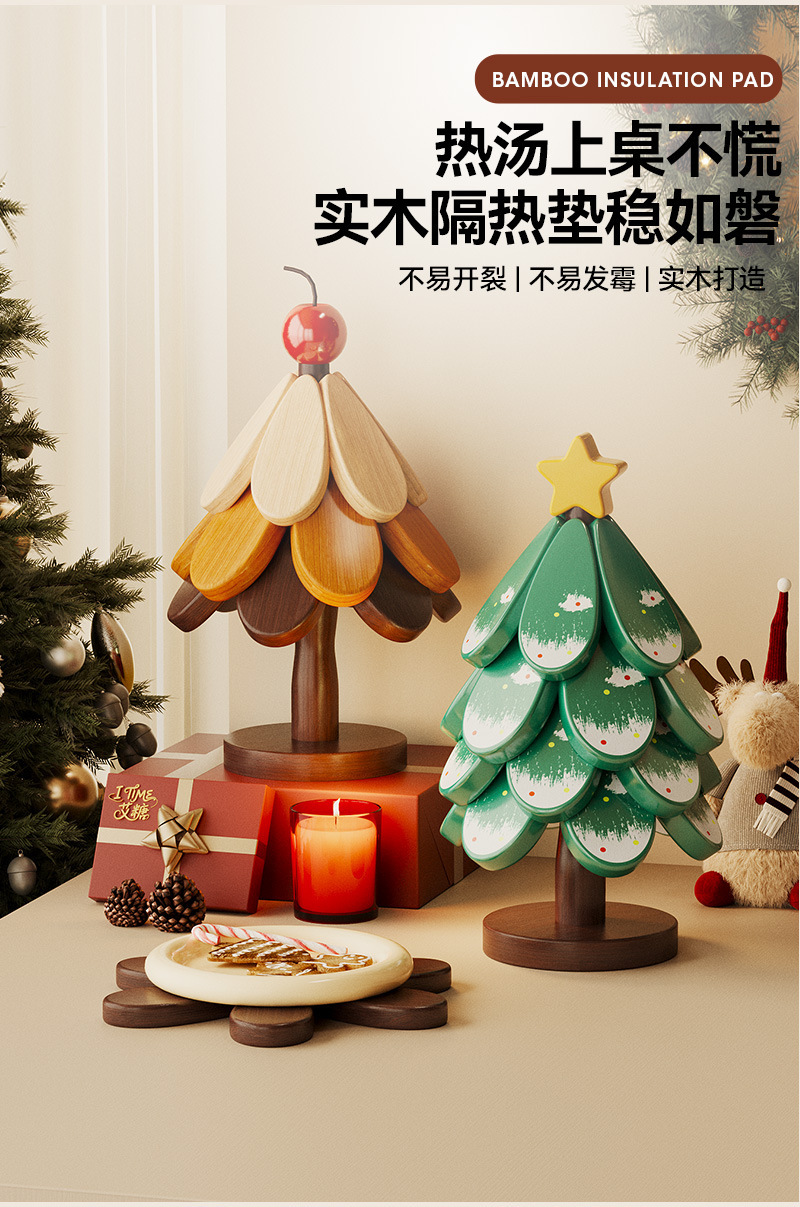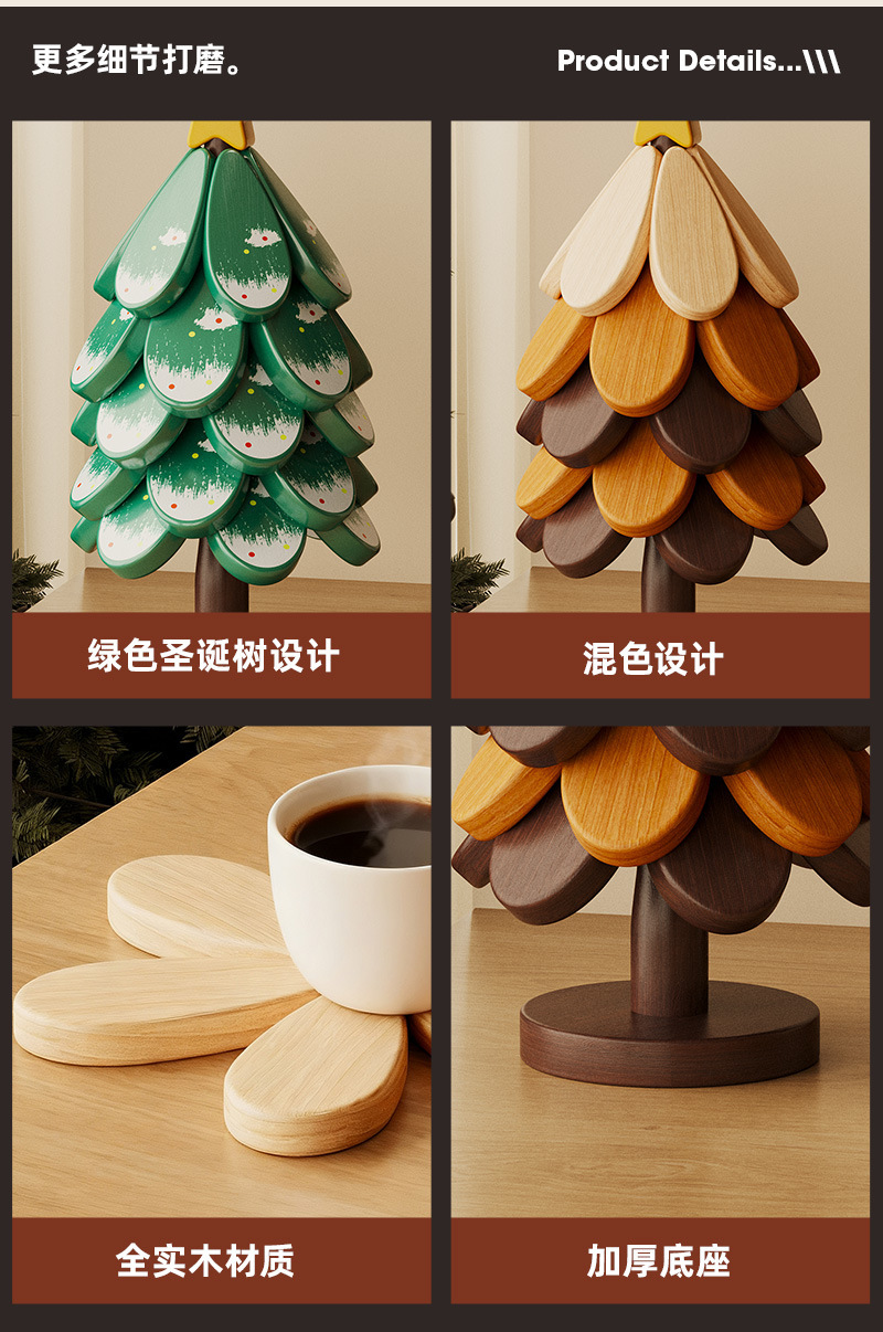 Árbol de Navidad transfronterizo almohadilla aislante de madera sólida un árbol taza almohadilla decoración de mesa de comedor creativa anti-corrosión almohadilla de tazón resistente a altas temperaturas