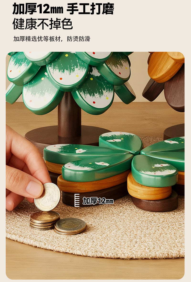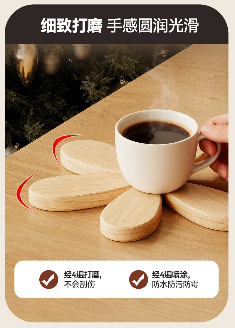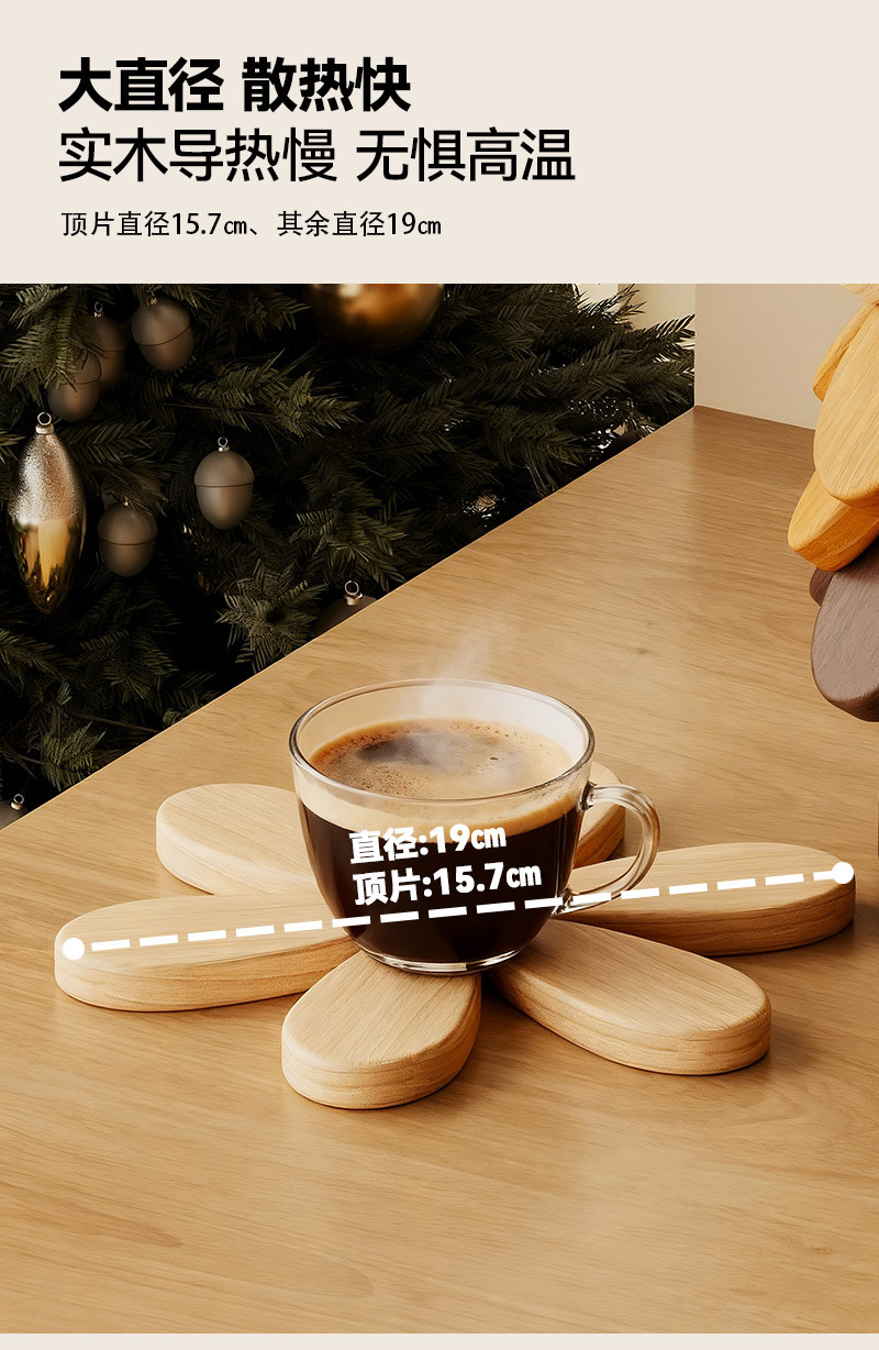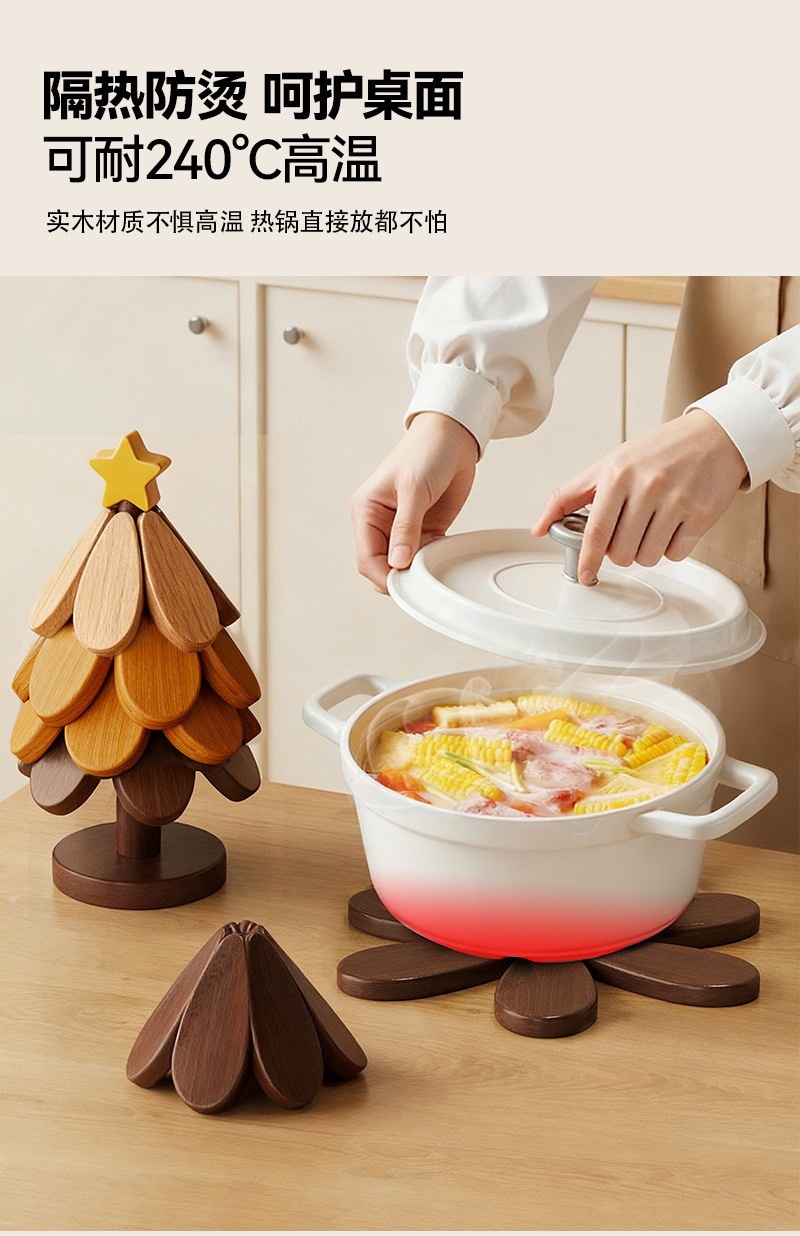 Árbol de Navidad transfronterizo almohadilla aislante de madera sólida un árbol taza almohadilla decoración de mesa de comedor creativa anti-corrosión almohadilla de tazón resistente a altas temperaturas