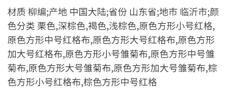 | Color | Tejido cuadrado de color primario rojo, Tejido cuadrado de color primario daisy, Tejido redondo de color primario rojo, Tejido redondo de color primario daisy, Tejido cuadrado de color marrón rojo, Tejido cuadrado de color marrón rojo, Tejido redondo de color marrón daisy, Tejido redondo de color marrón daisy |
