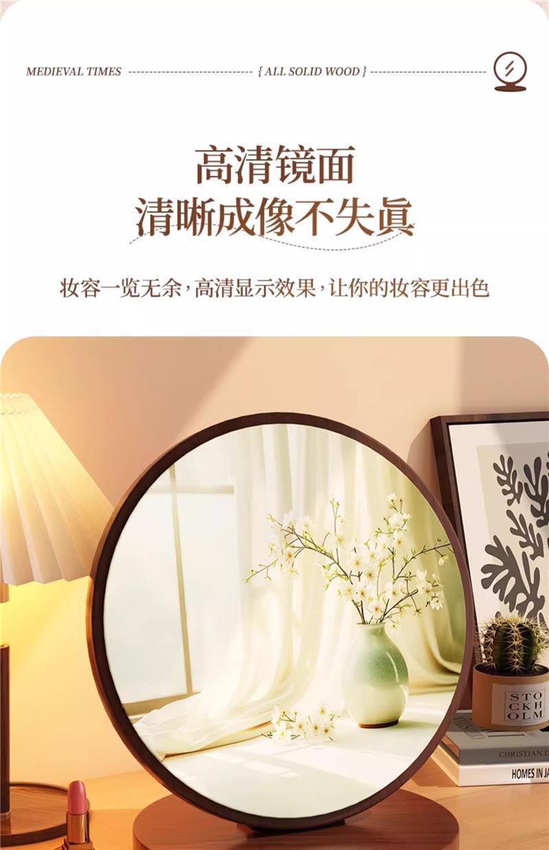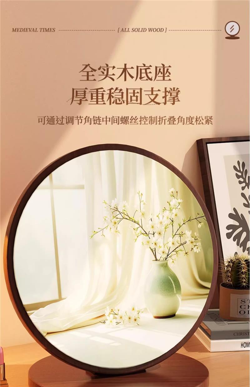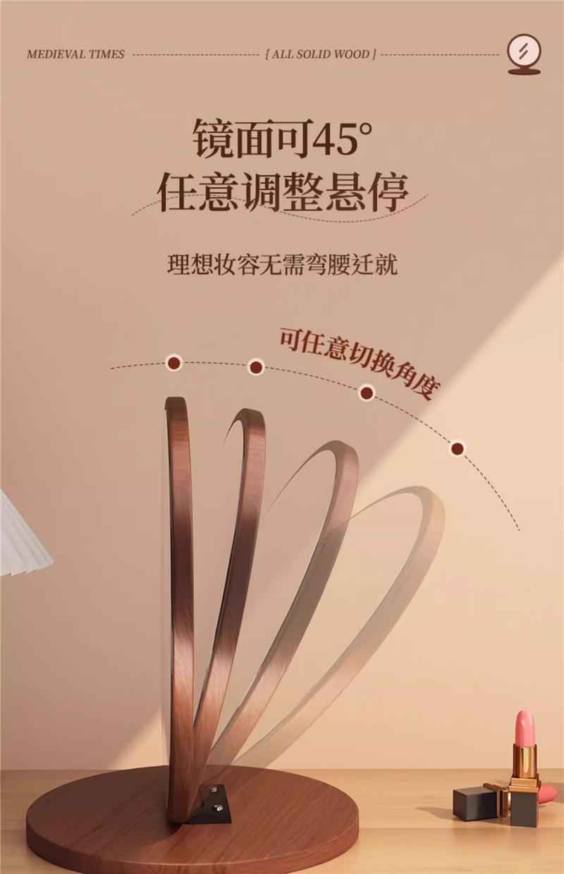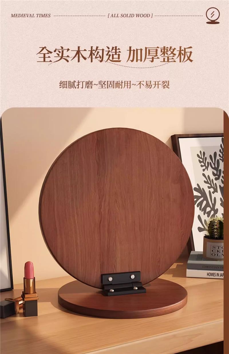 Espejo de maquillaje de madera maciza para el hogar, espejo de tocador de dormitorio femenino, espejo de tocador de escritorio grande plegable portátil retro