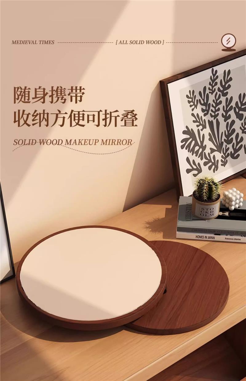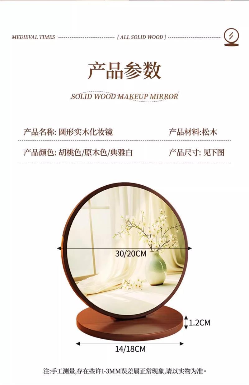 Espejo redondo de madera maciza 20cm-color nogal-compensación por daños