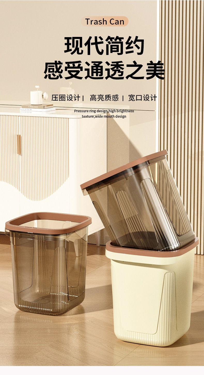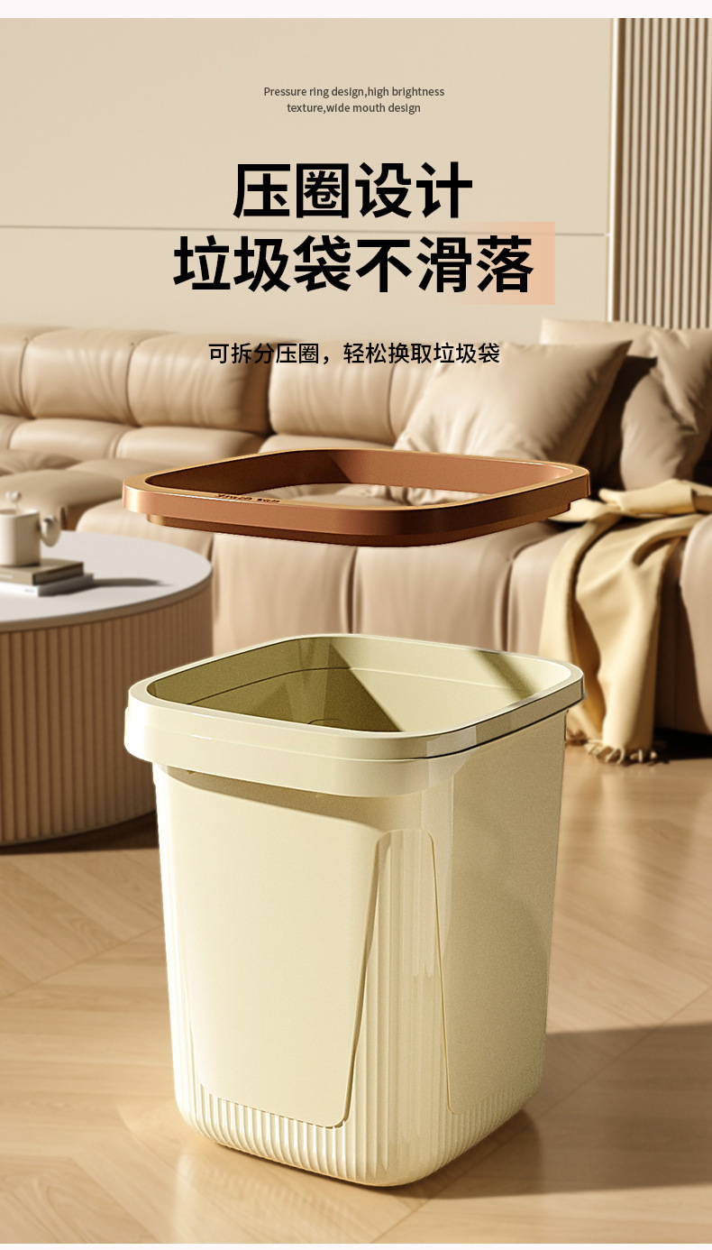 Bote de basura, dormitorio, bote de basura de cocina grande y de gran capacidad, hogar, lujo ligero, sensación de alta gama, bote de basura de sala de estar con anillo de presión