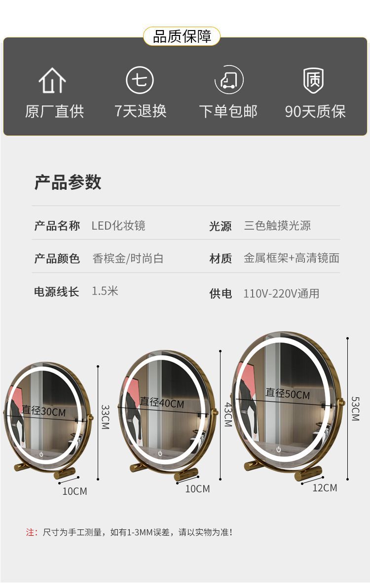 Espejo de tocador para el hogar Espejo de tocador de escritorio giratorio de 360 grados con luz de relleno Espejo de tocador led de lujo ligero para dormitorio