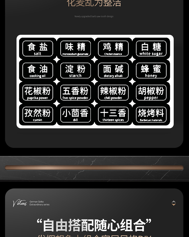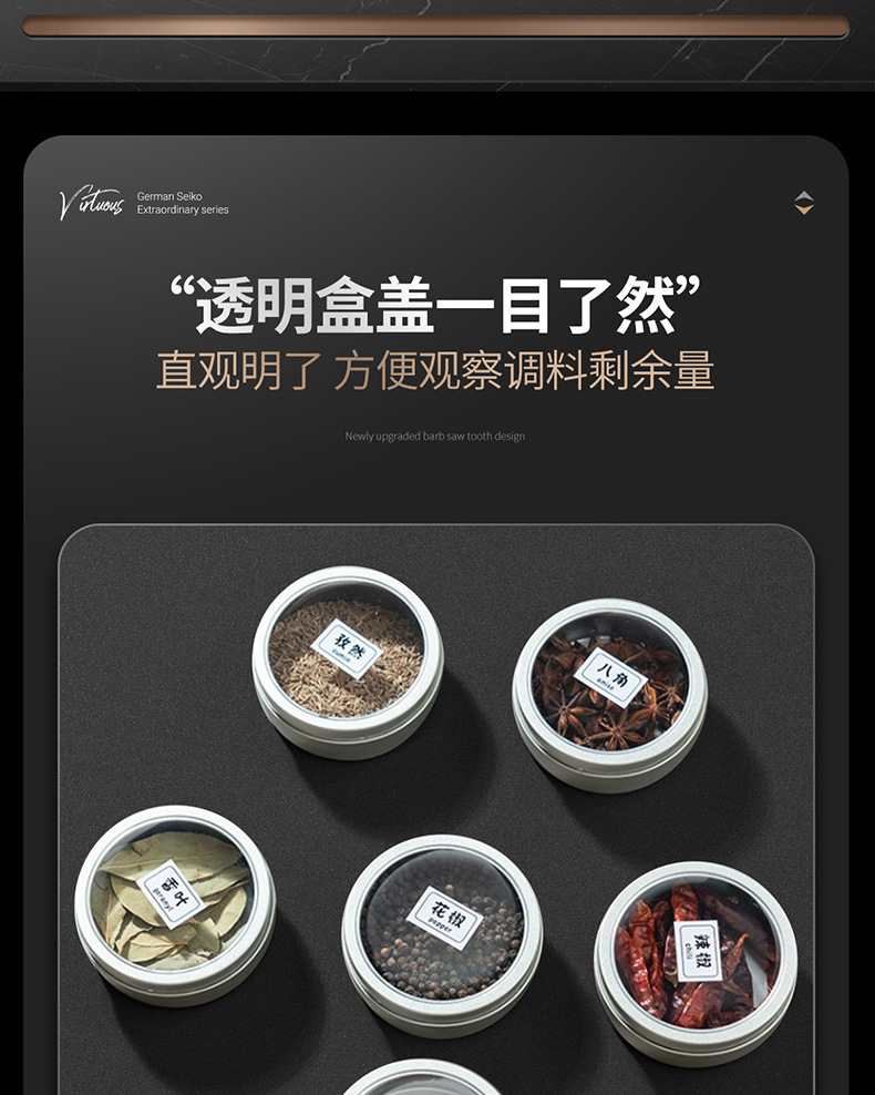La cocina a prueba de humedad latas de especias caja de adsorción magnética ligera de lujo caja de almacenamiento de especias octogonal caja de sellado de especias transparentes caseras
