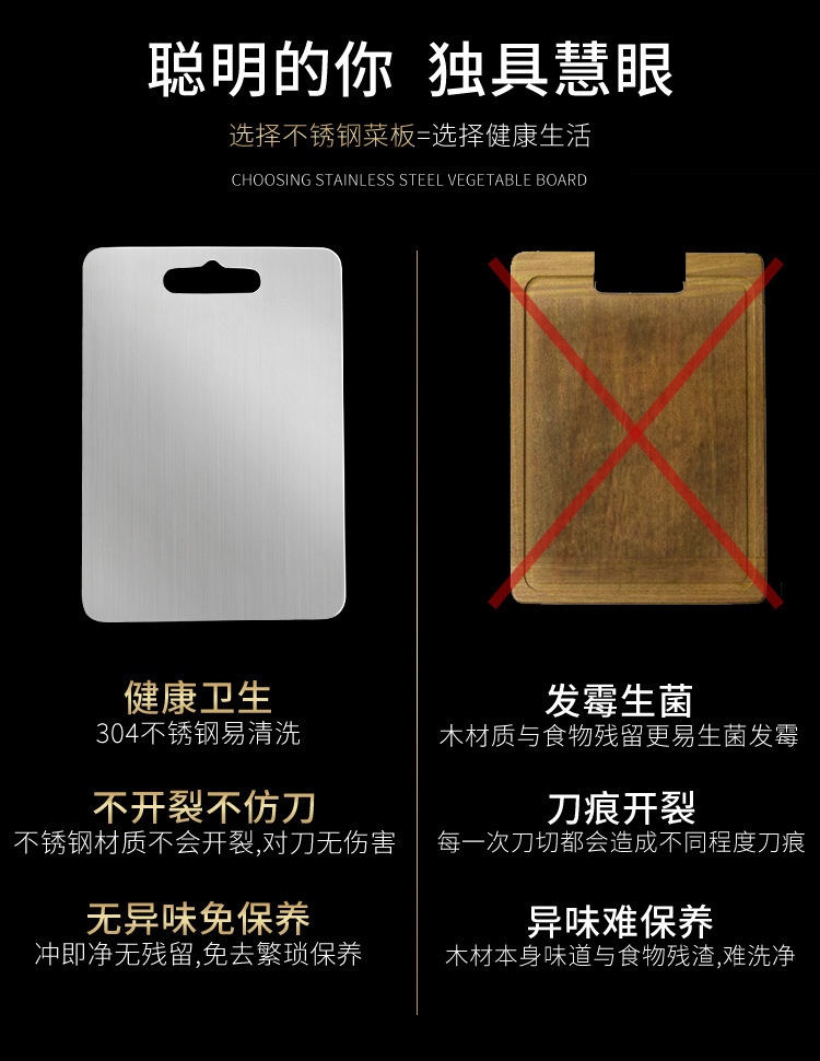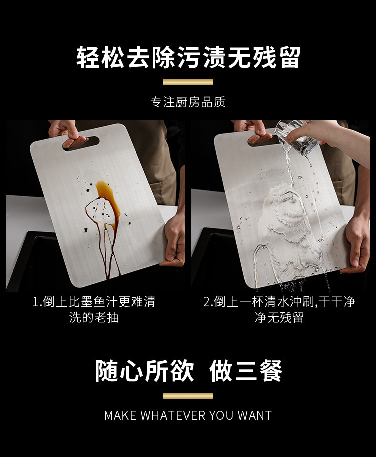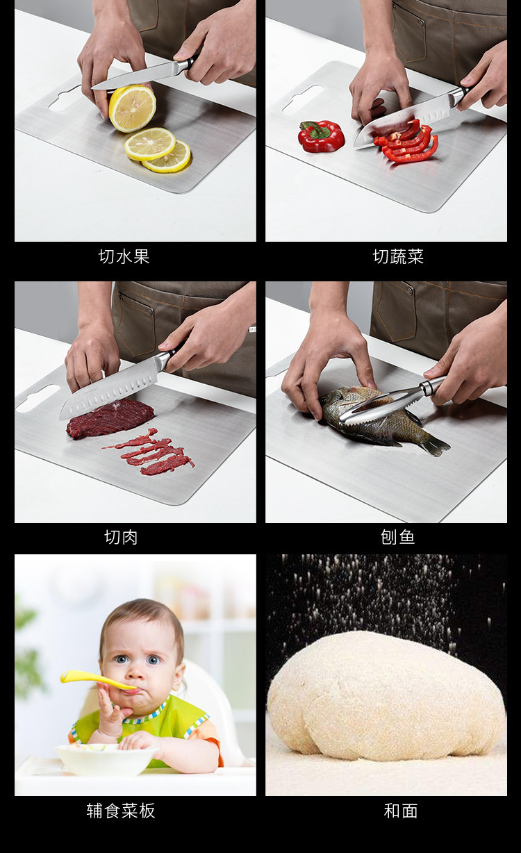 Tablero de cortar de acero inoxidable antibacteriano de doble cara 316 de grado alimenticio comercial 304 grueso y anti-moho tabla de cortar para cortar frutas y verduras
