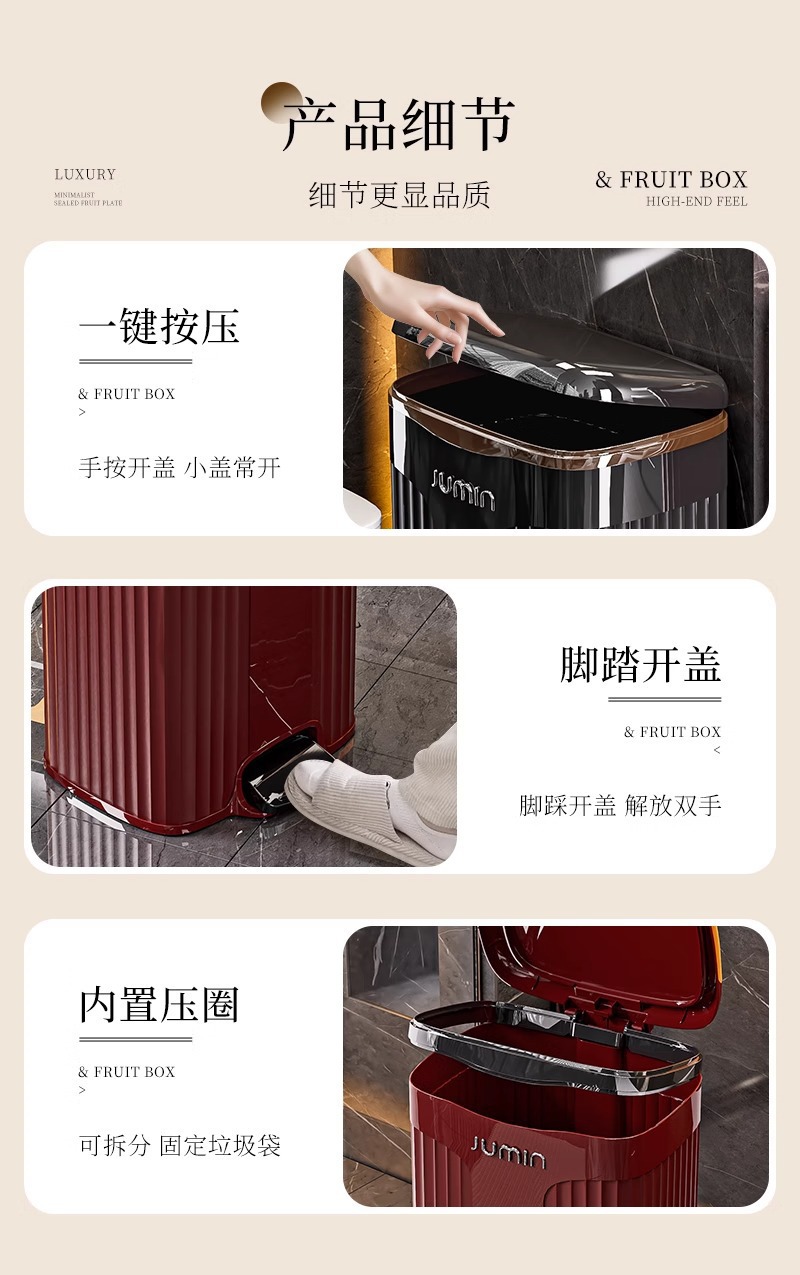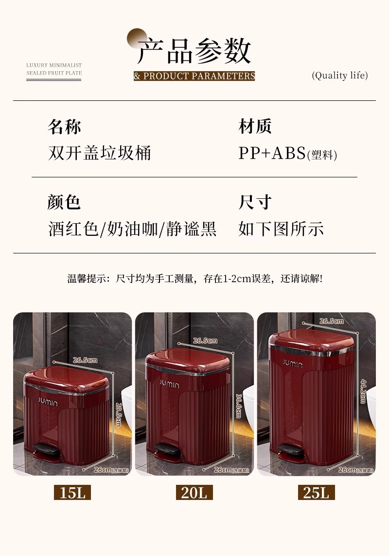 | Color | Cream Curry-Mediano 20L [Pie + Hand Press ❤ Silent Slow Down], [20L] Red Wine [Pie + Hand Press ❤ Silent Slow Down], [20L] Silent Black [Pie + Hand Press ❤ Silent Slow Down], [25L] Cream Curry [Pie + Hand Press ❤ Silent Slow Down], [25L] Red Wine [Pie + Hand Press ❤ Silent Slow Down], [25L] Silent Black [Pie + Hand Press ❤ Silent Slow Down], [25L] Red Wine [Pie + Hand Press ❤ Silent Slow Down], Cream Curry-Mediano 15L [Pie + Hand Press ❤ Silent Slow Down],[15L] vino rojo [pedal + presión de mano❤ silencioso caída], [15L] negro tranquilo [pedal + presión de mano❤ silencioso caída], crema blanca + café chocolate [pedal + presión de doble tapa abierta] |