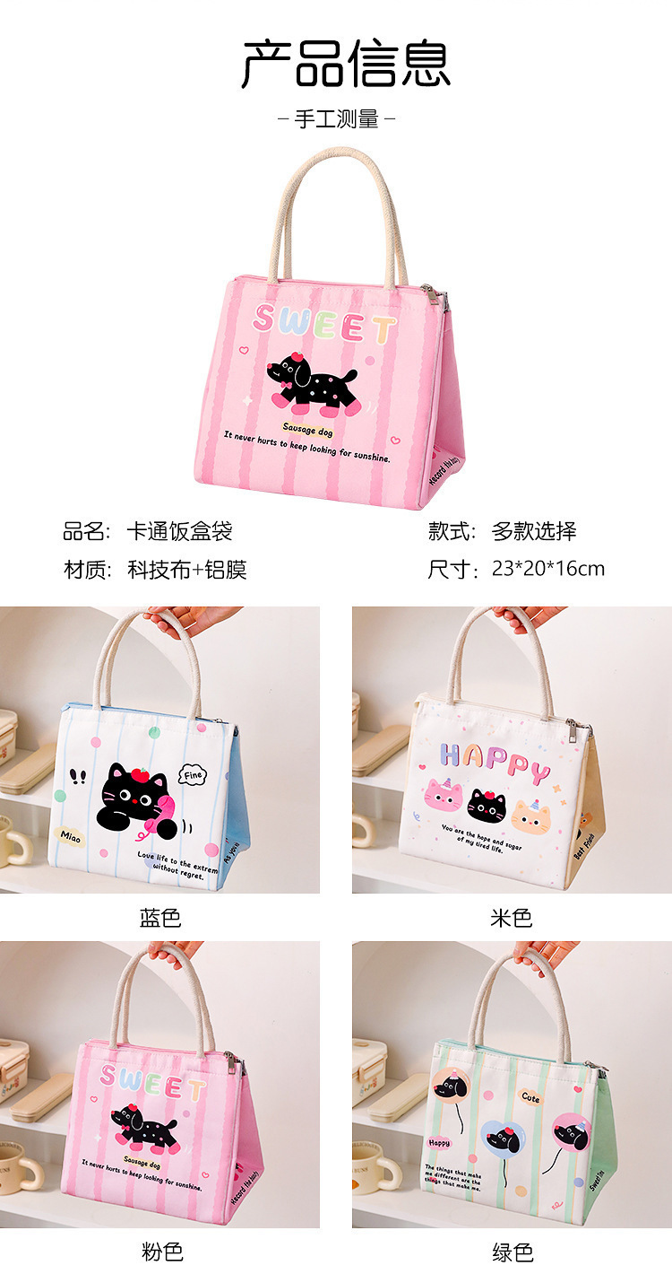 Bolsa de almuerzo de dibujos animados, bolsa de almuerzo de aluminio portátil, bolsa de almuerzo portátil de gran capacidad