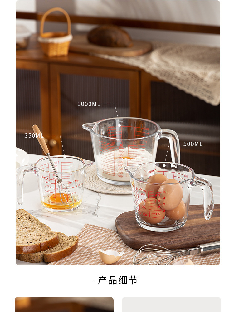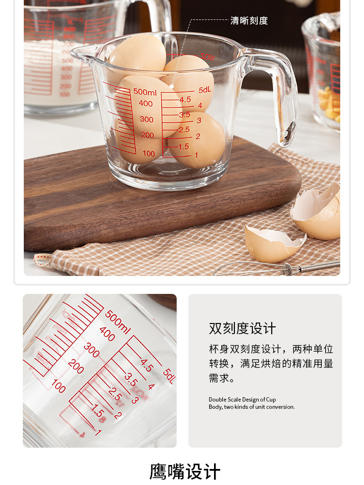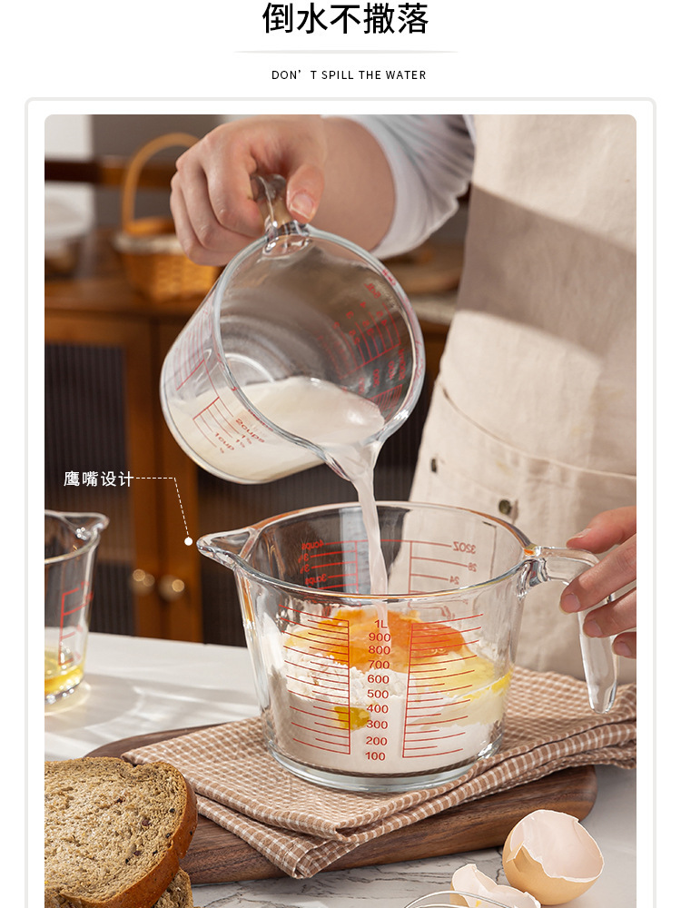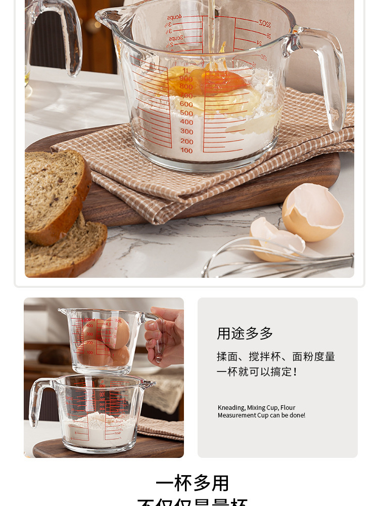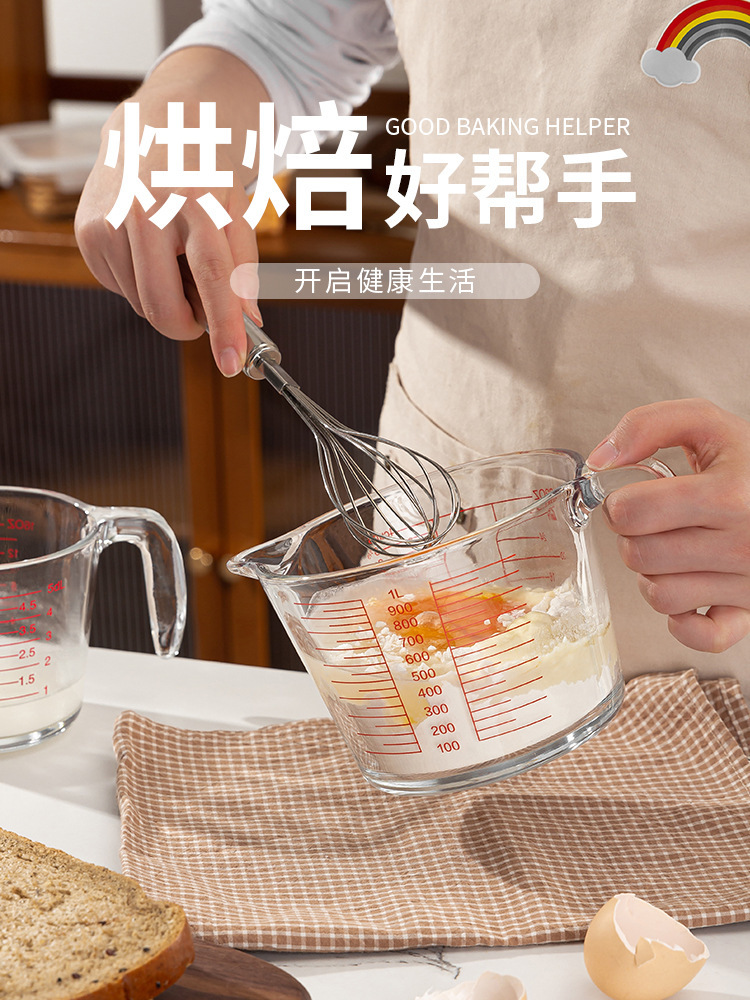 Taza de escala de vidrio con mango Taza de medición doméstica de alto valor facial de cocina Taza de batida de huevos de leche Herramienta de horneado Taza de gran capacidad