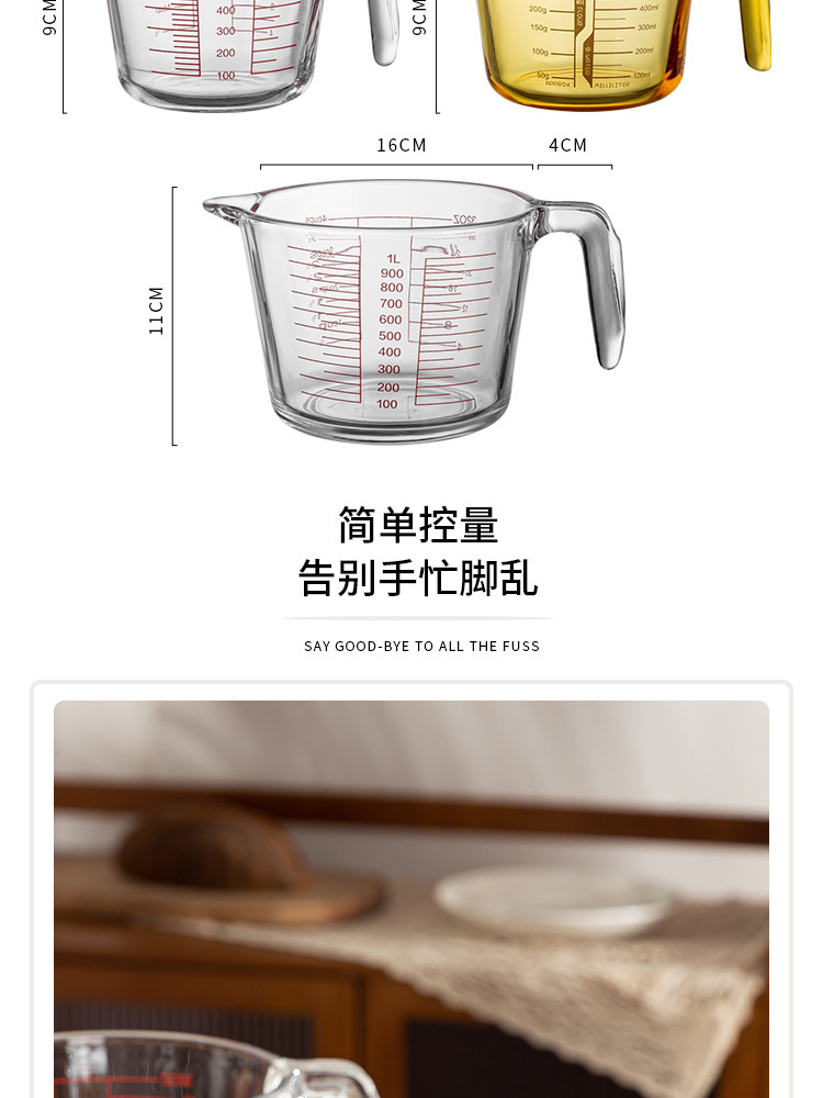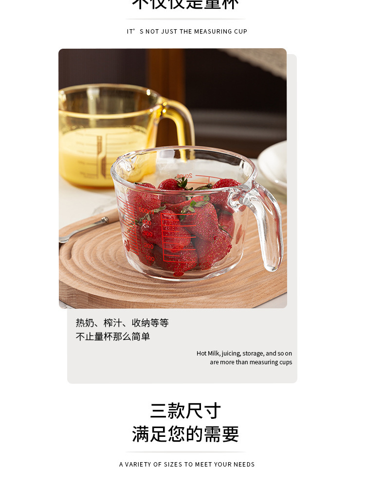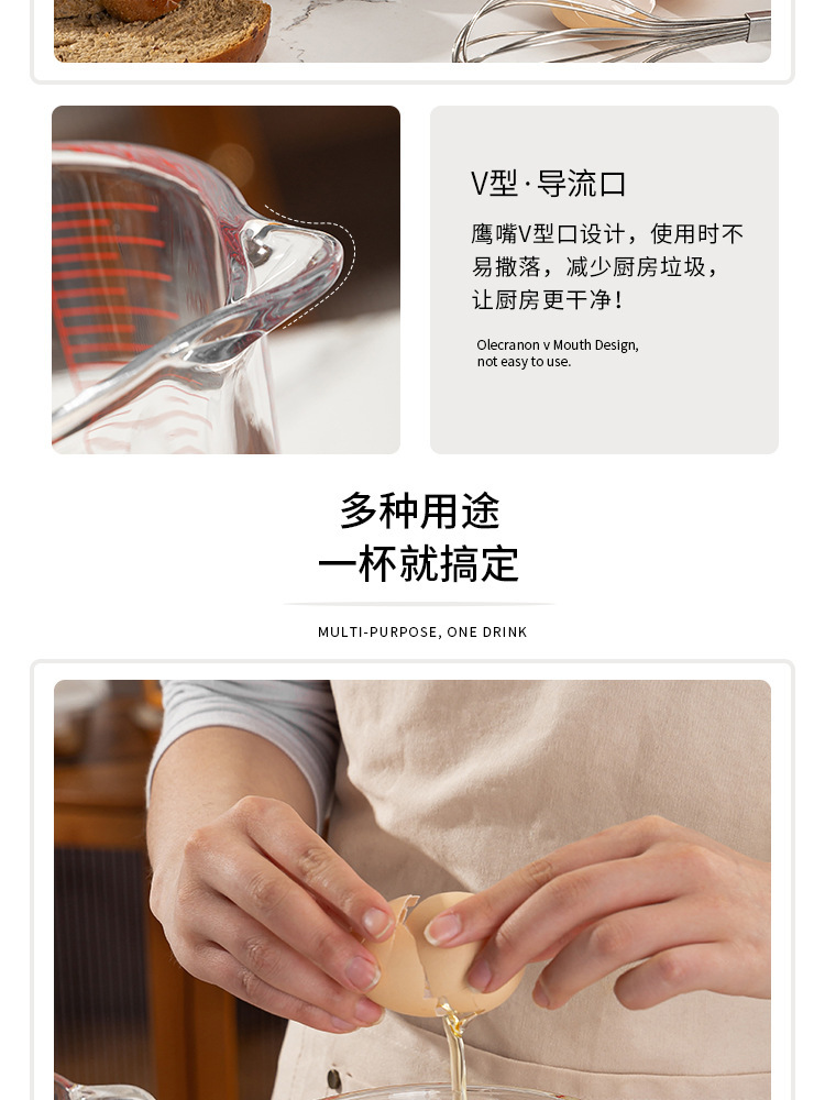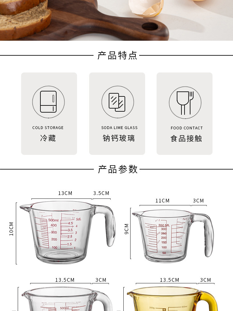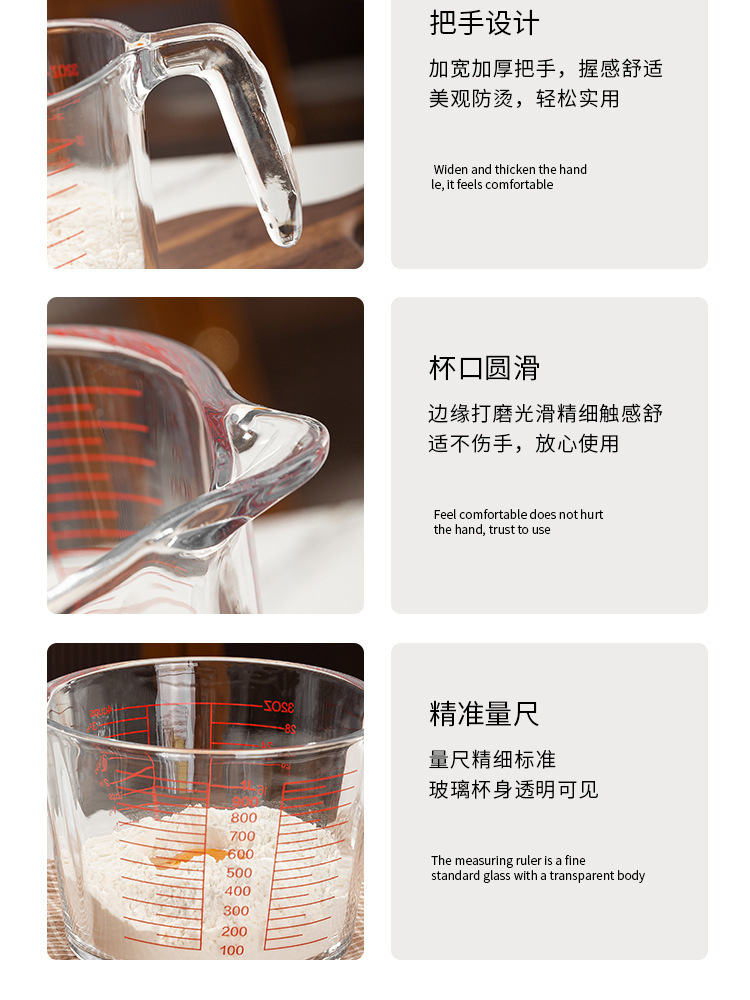 Taza de escala de vidrio con mango Taza de medición doméstica de alto valor facial de cocina Taza de batida de huevos de leche Herramienta de horneado Taza de gran capacidad