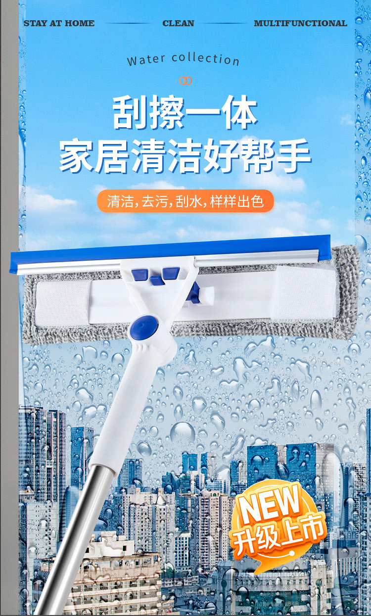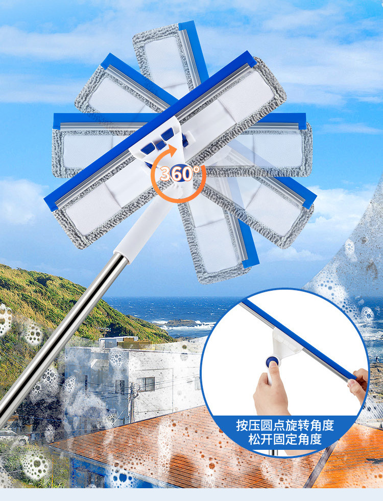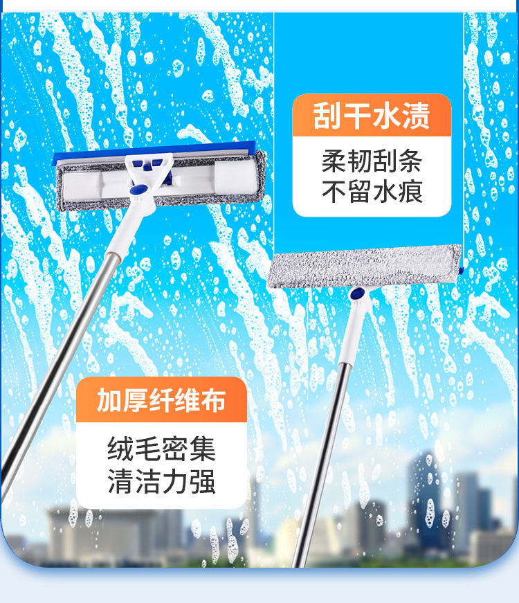 Limpieza de vidrio artefacto de limpieza de ventana doméstica ventana de alto nivel ventana exterior herramienta especial de limpieza varilla telescópica limpieza de vidrio raspador de doble cara