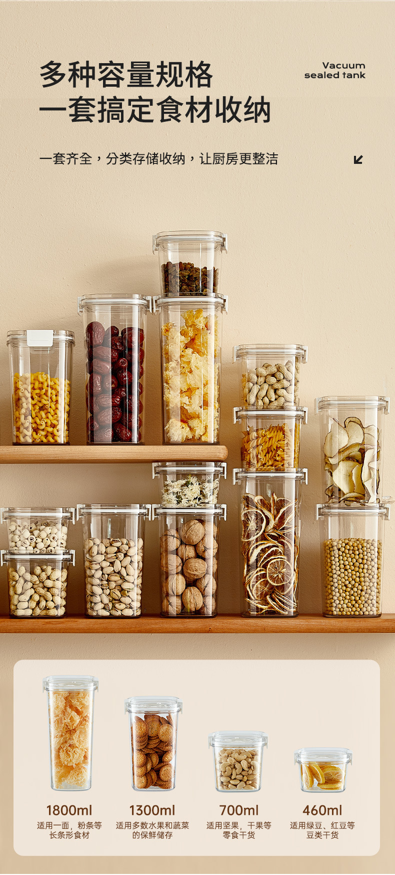 Tanque de sellado al vacío de una llave plástico grueso caja de almacenamiento transparente caja de almacenamiento de bocadillos cuadrada granos