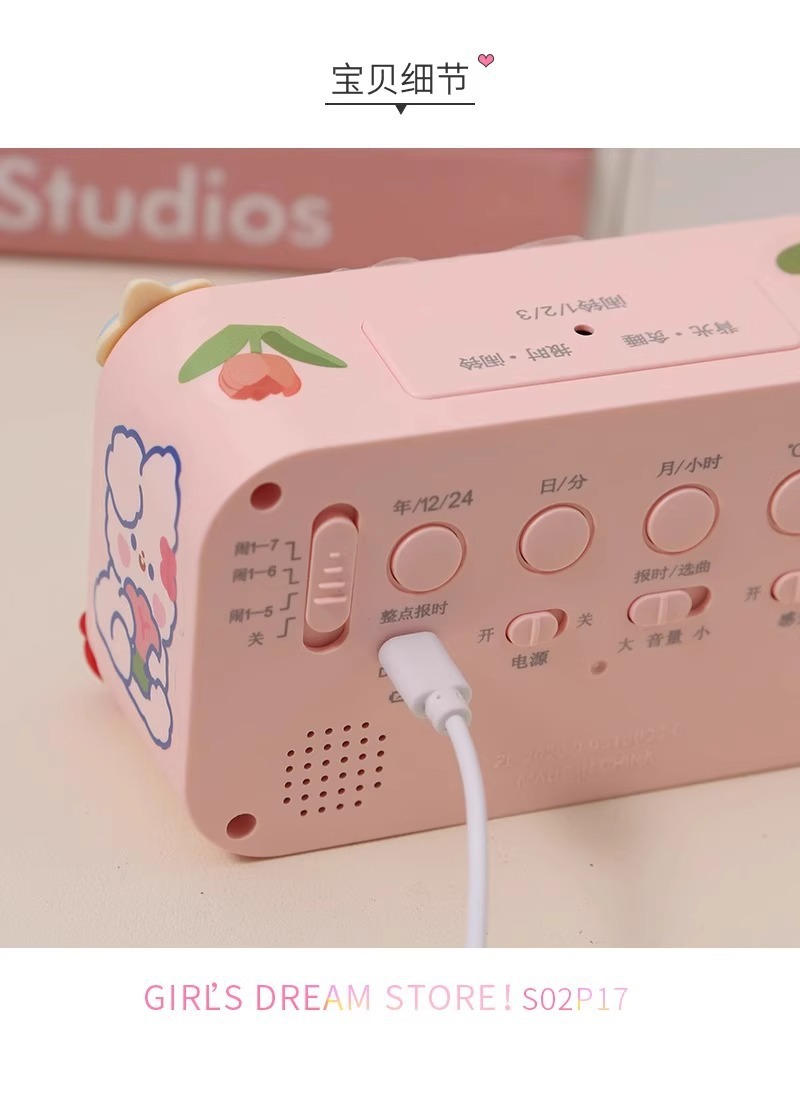 Recargable - Pink [Sleepy + Nightlight + Voice Broadcast] para enviar pegatinas Kapibara + adornos