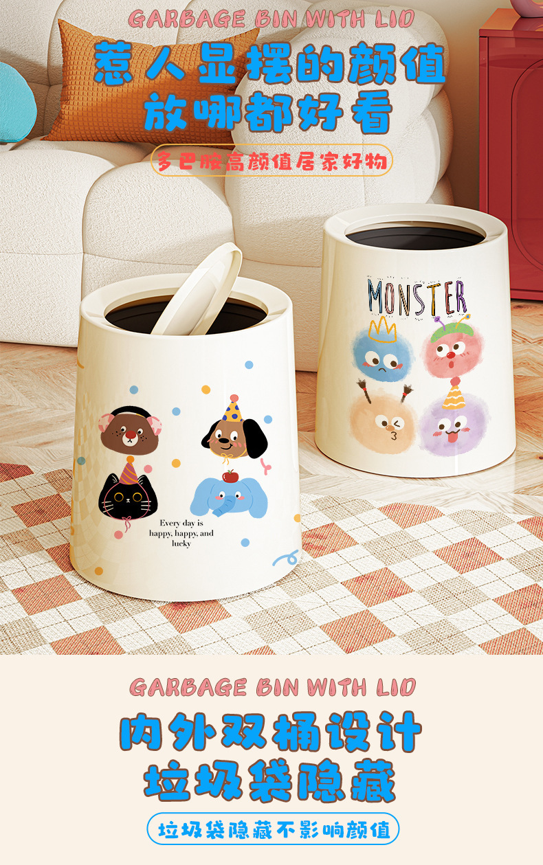 Basurera doméstica 2025 nueva sala de estar dormitorio cocina presionar el baño creativo lindo alto valor con cubierta
