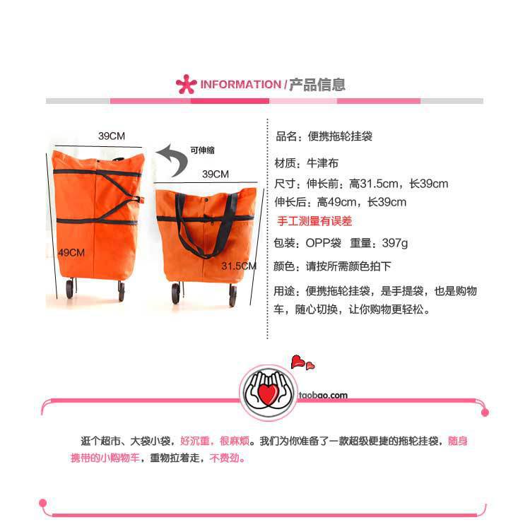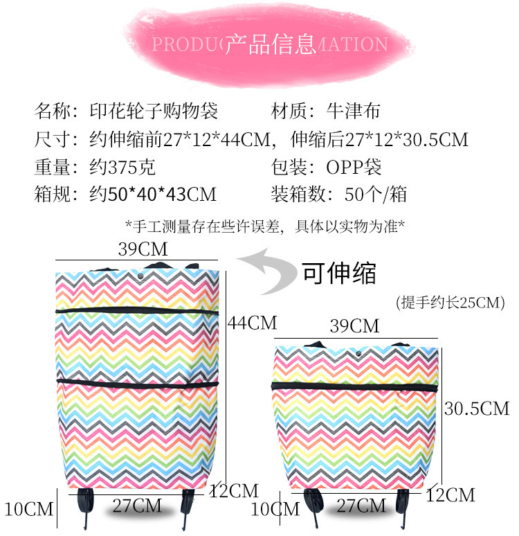 Venta directa de fábrica bolsa de compras plegable portátil tela Oxford carrito de la compra portátil de la compra de verduras carrito de la mano