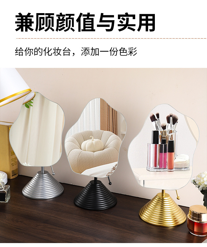 Iron Art Studio Espejo de arte irregular Escritorio de dormitorio de estudiantes Espejo de tocador de una cara Nube Espejo de maquillaje de forma especial