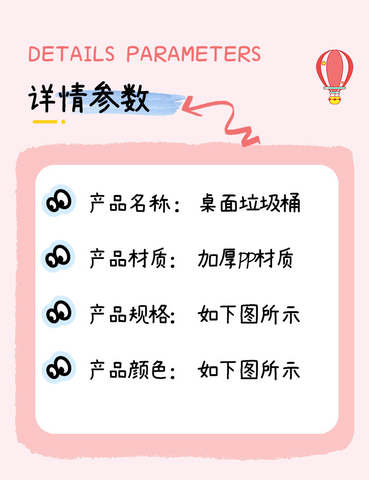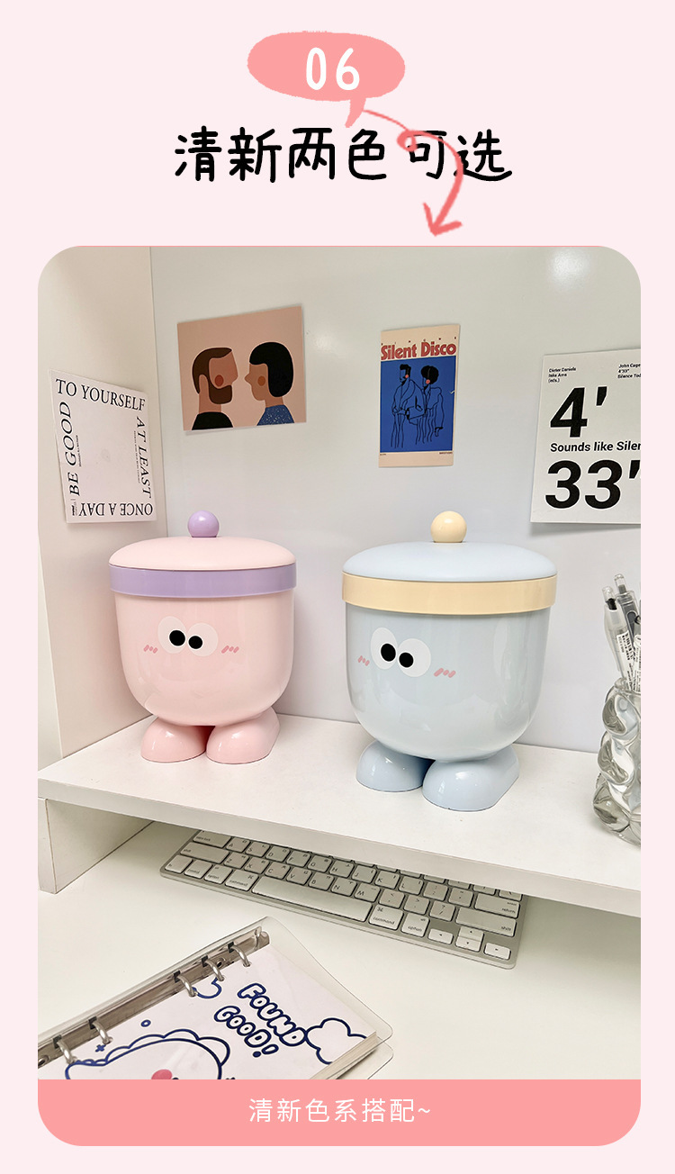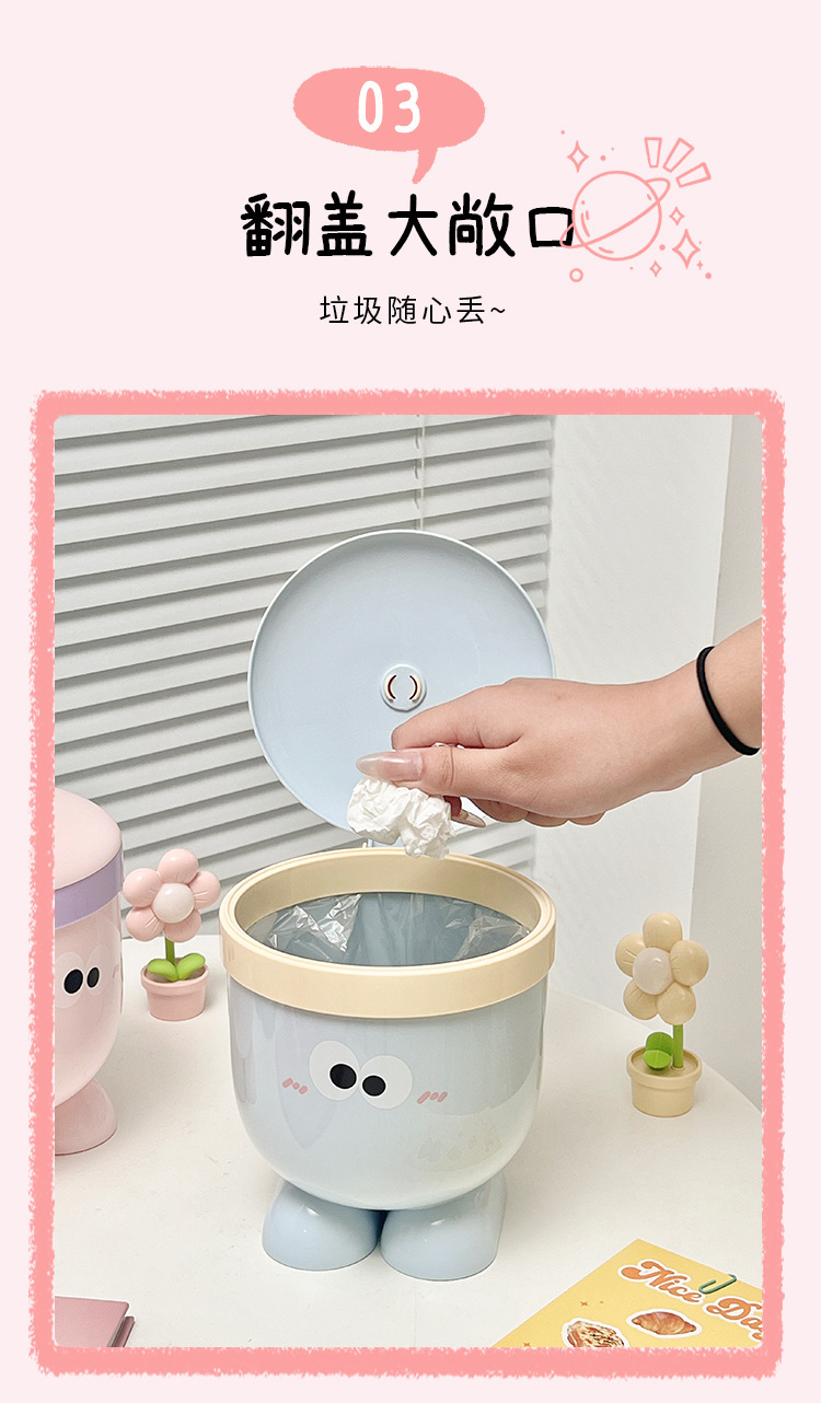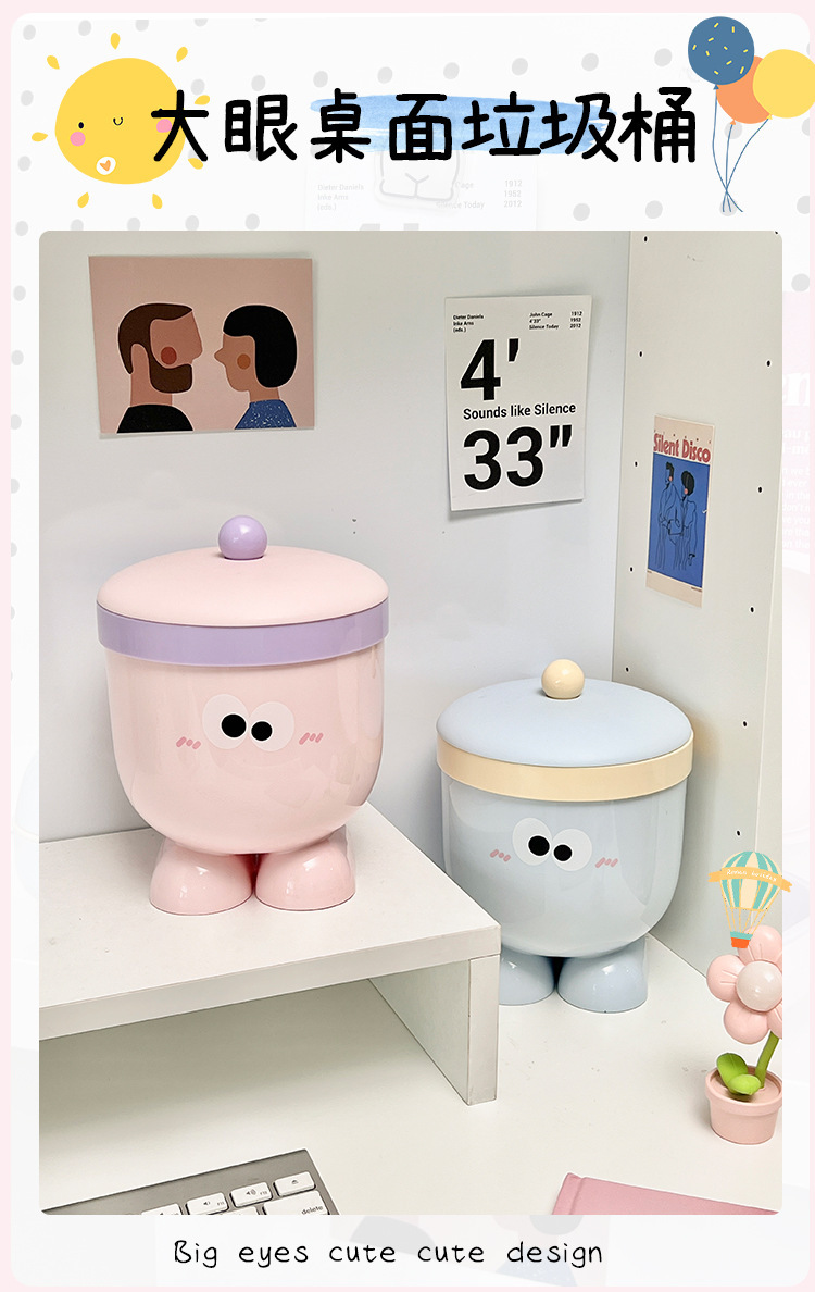 Plástico creativo de dibujos animados mesa bote de basura tapa cubo de almacenamiento hogar dormitorio de estudiantes cubo de artículos diversos ojos grandes