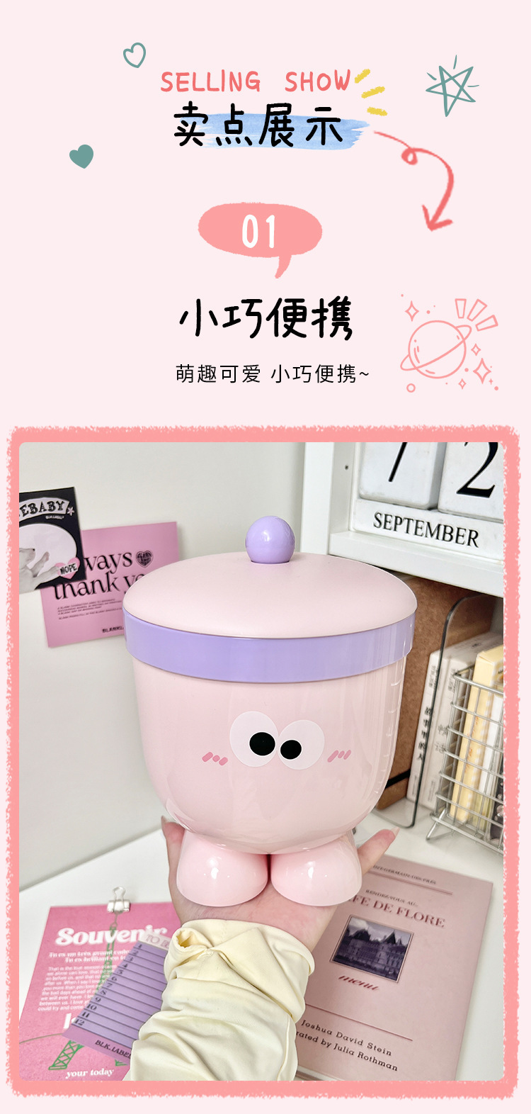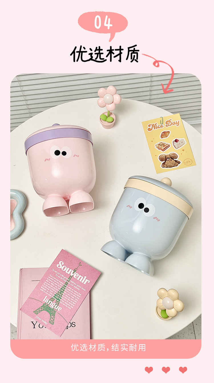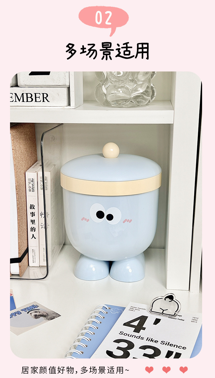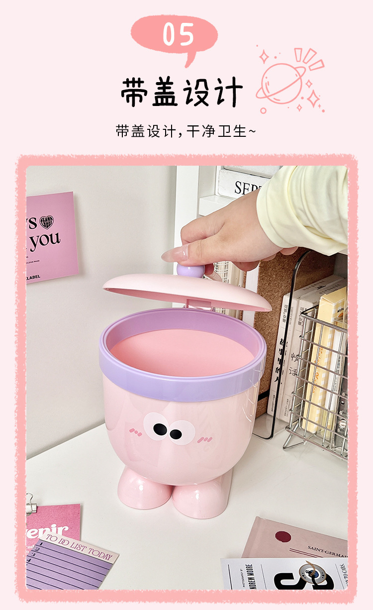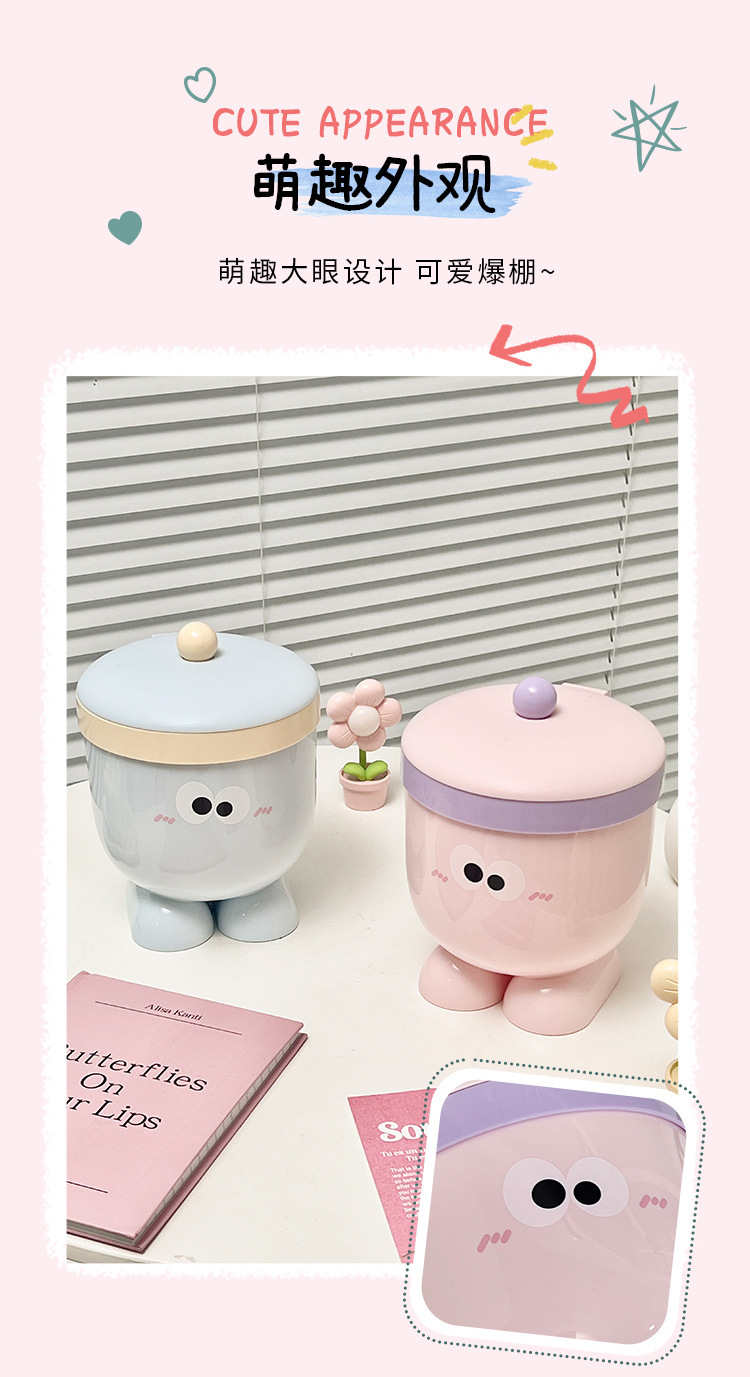 Bote de basura de ojos grandes con tapa 丨 rosa