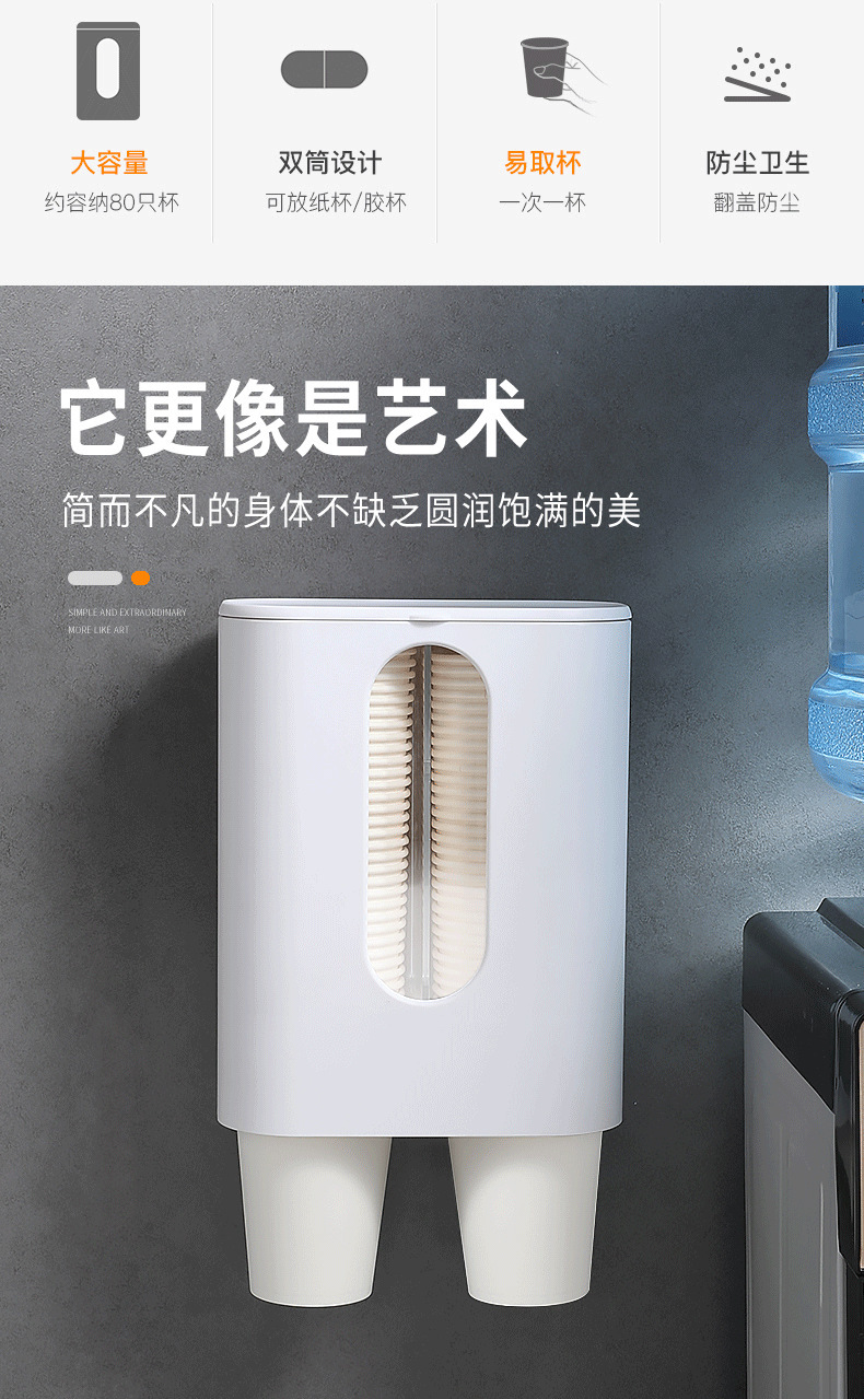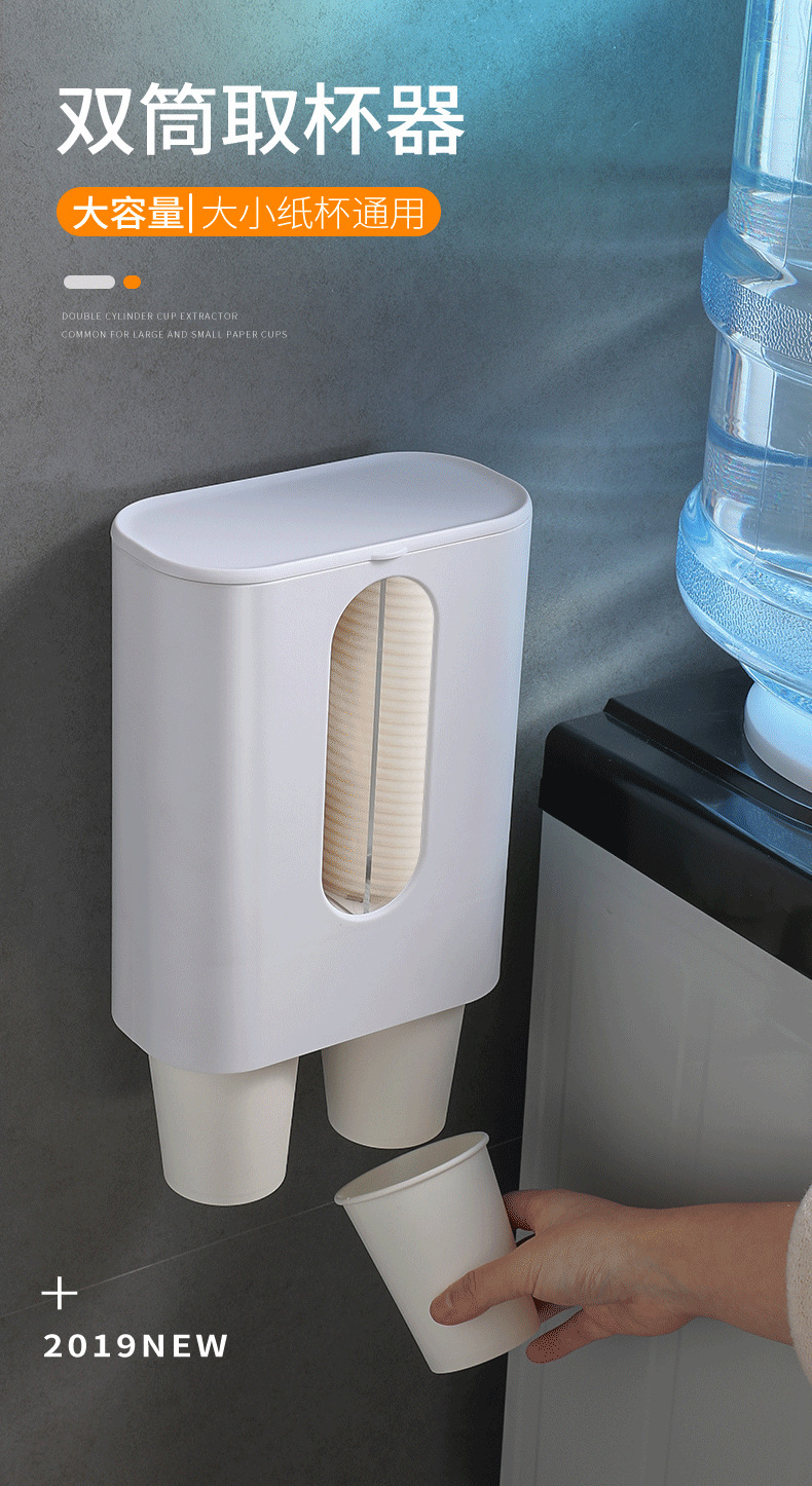 Portador de vasos desechable, sin perforación, restaurante, restaurante, restaurante, estante de almacenamiento, dispensador de agua, soporte para vasos de papel de doble tubo
