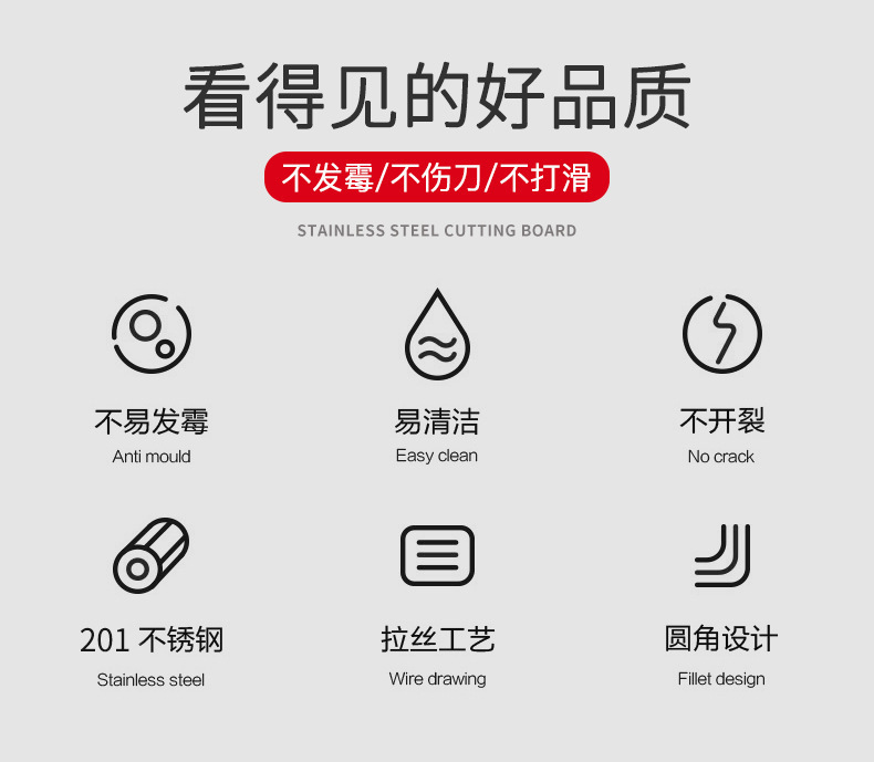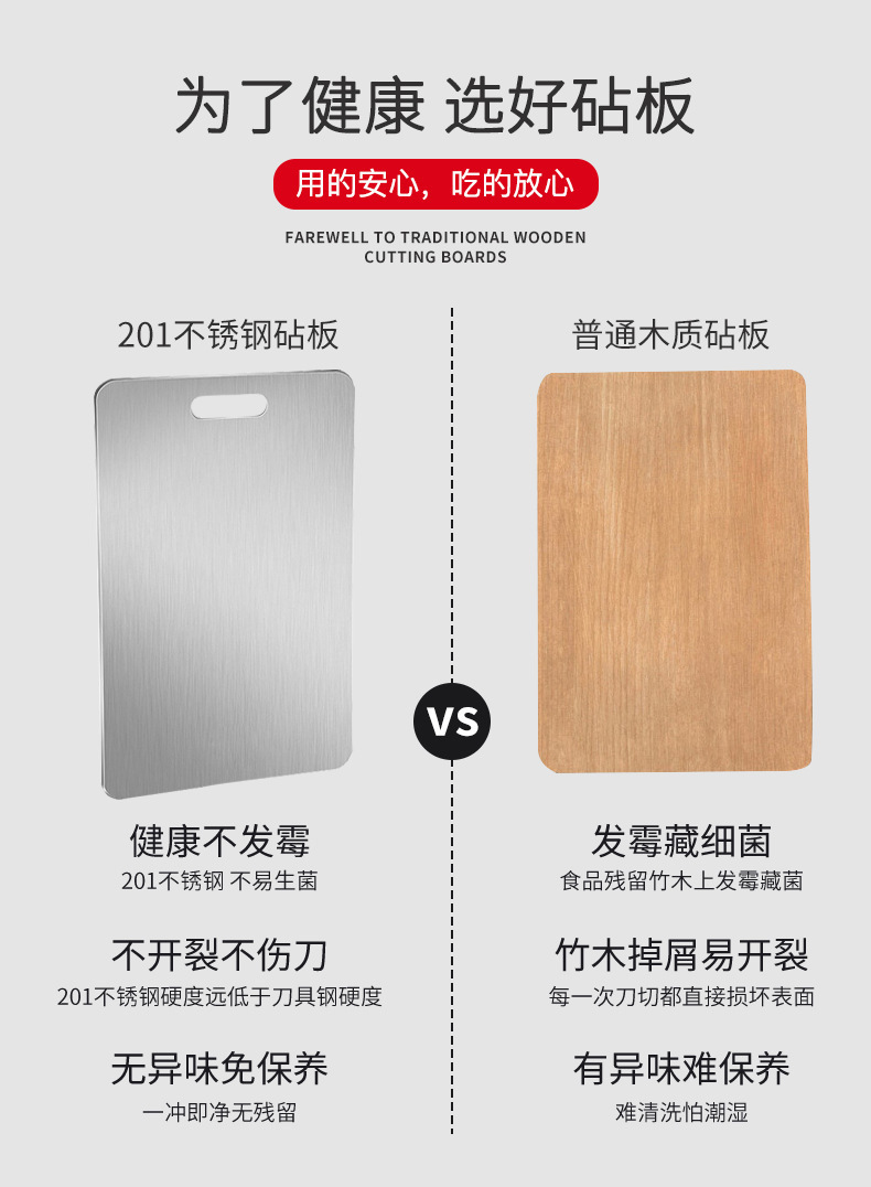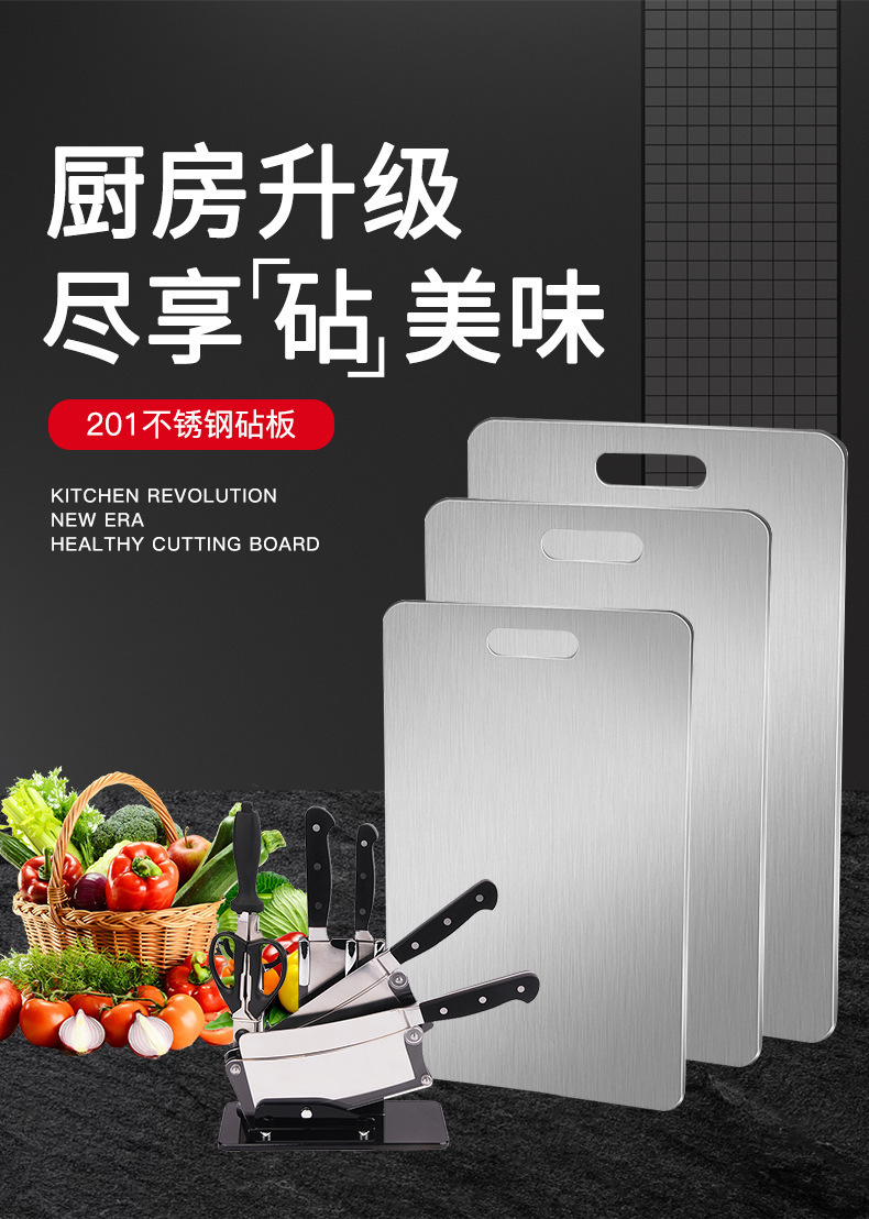 Tablero de cortar de acero inoxidable Tablero de cortar cuadrado chino Tablero de cortar de doble cara multifuncional de cocina Tablero de cortar doméstico grueso al por mayor