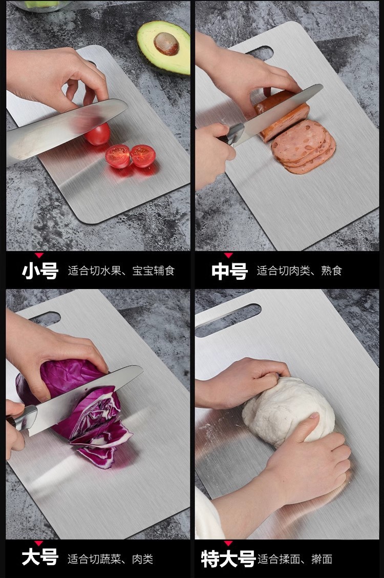 316 acero inoxidable engrosado, antibacteriano y a prueba de moho, doble cara, tabla de cortar 304, cocina doméstica, tabla de cortar de frutas, tabla de cortar de fideos enrollados grandes