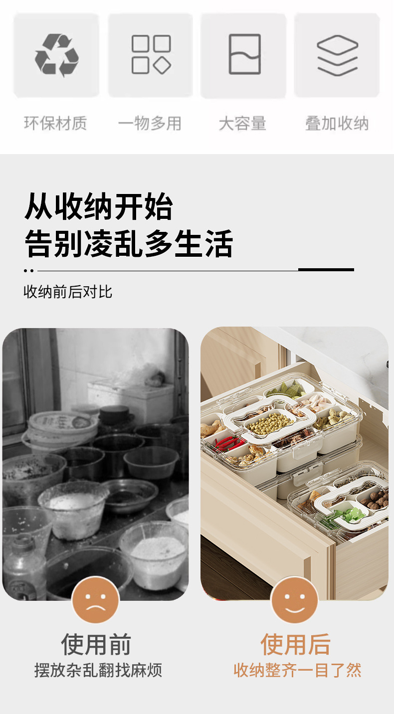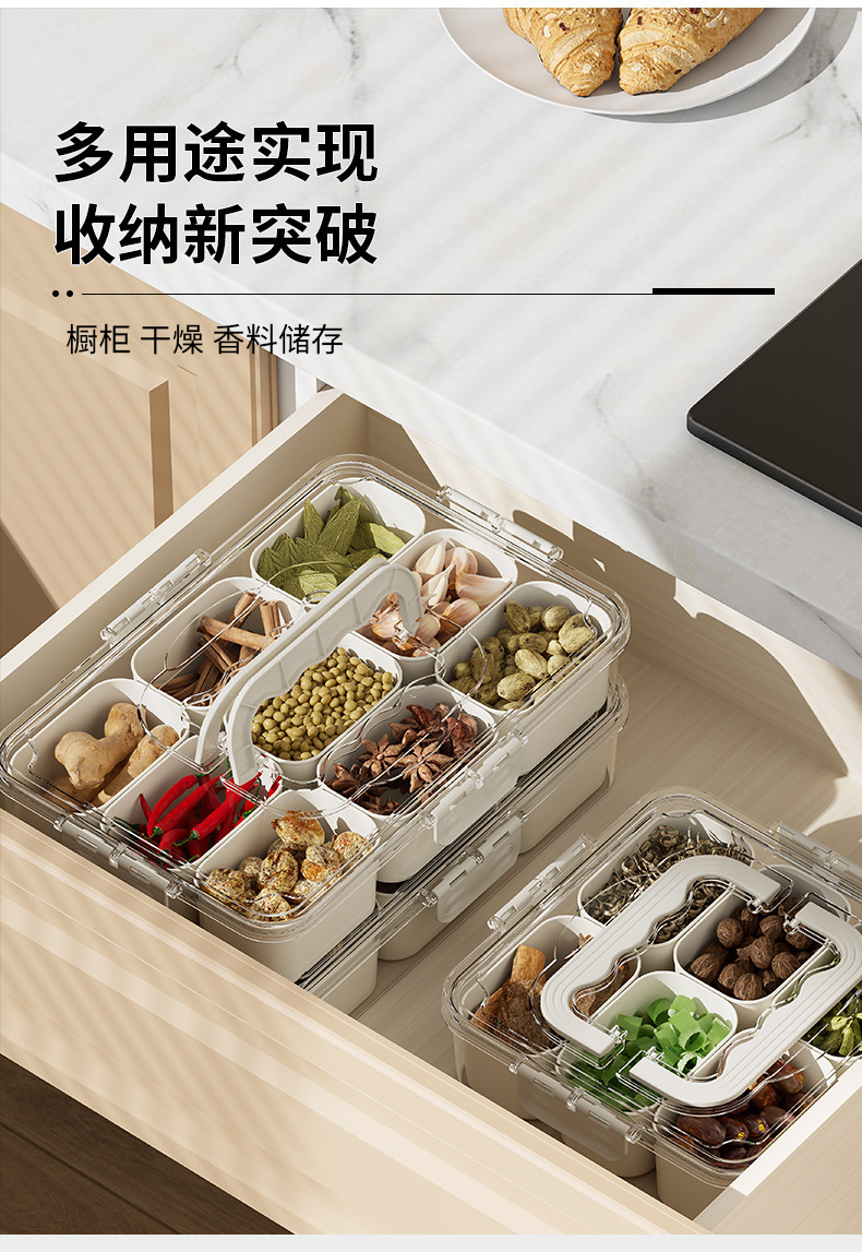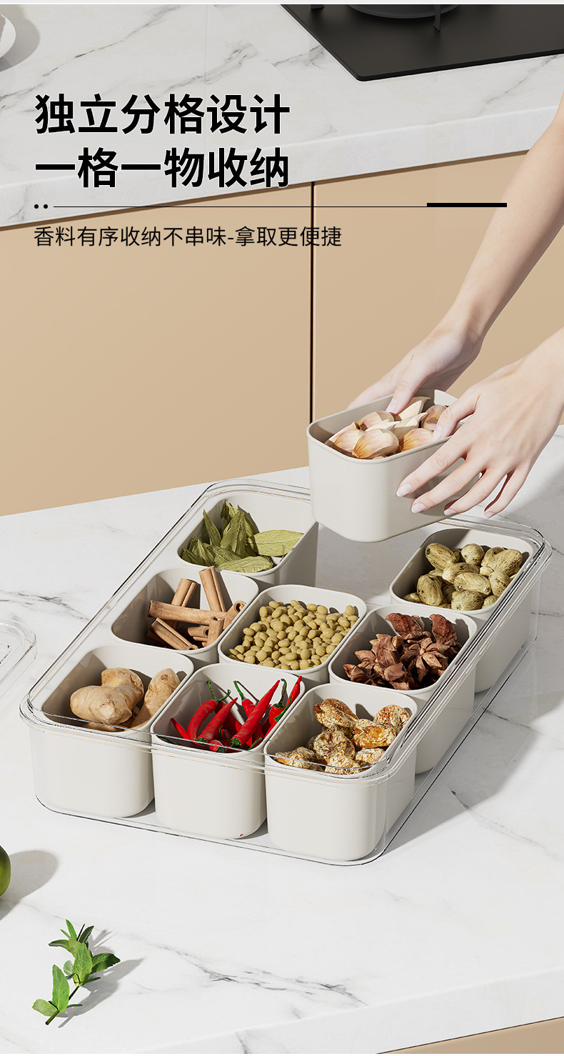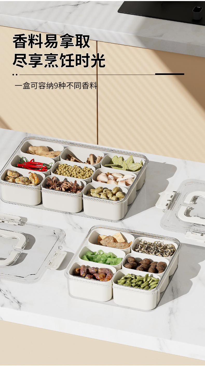Caja de almacenamiento de especias de cocina doméstica pimienta gran caja de almacenamiento de material condimentar lata de sellado caja de clasificación de grado alimenticio