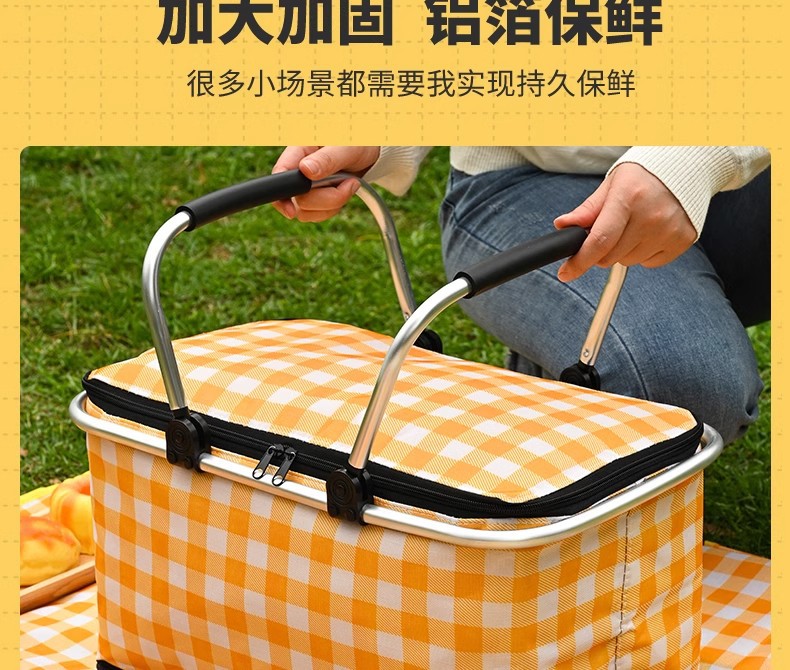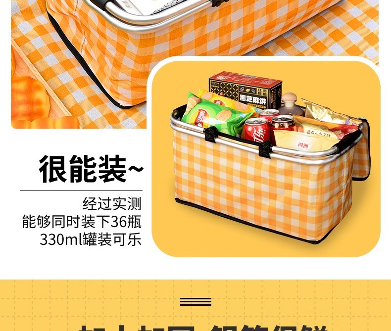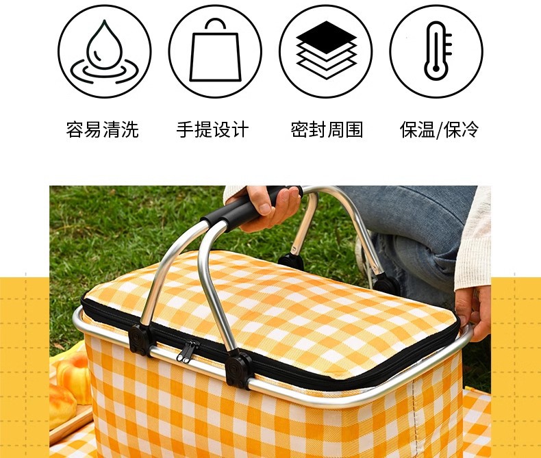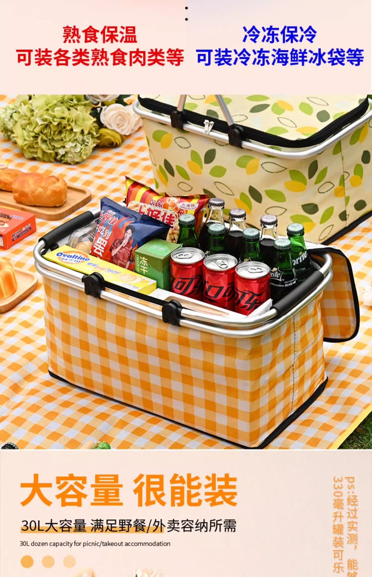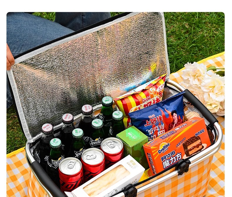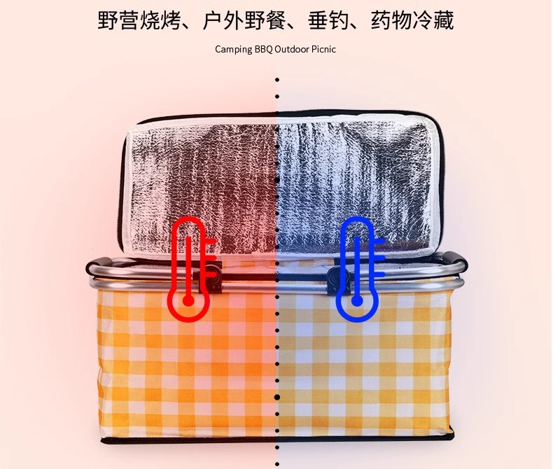 Cesta de picnic primavera plegable al aire libre acampado aislamiento de camping portátil cestas de picnic suministros de red necesaria cesta