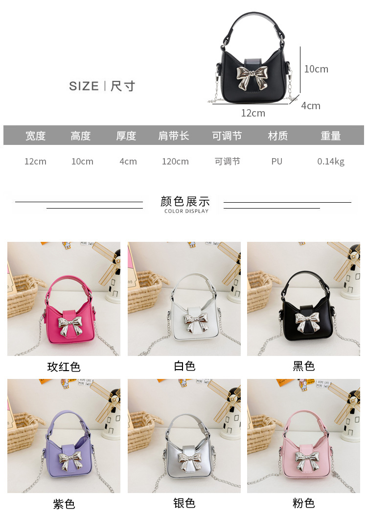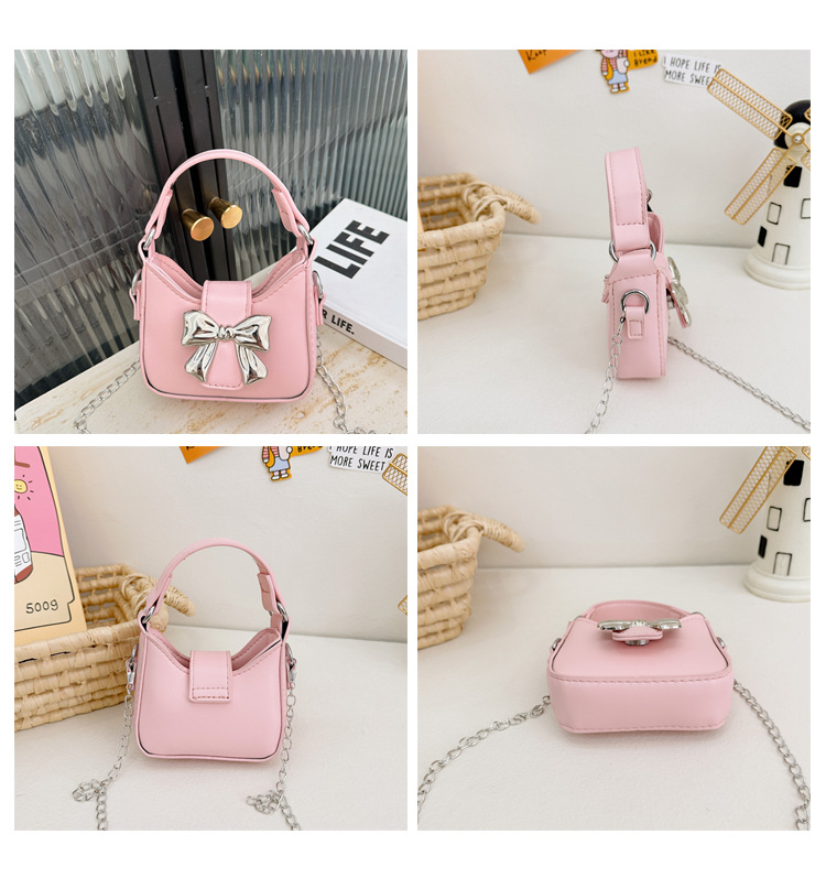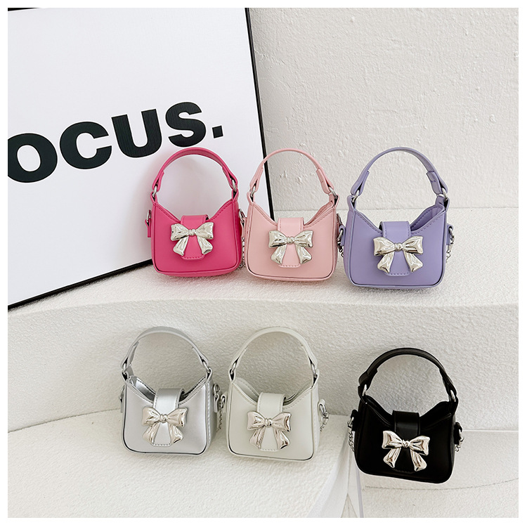 Bolso para niños 2024 nuevo estilo color caramelo arco mini bolso para niñas cadena para padres e hijos bolso de mensajero sobre rojo